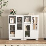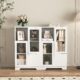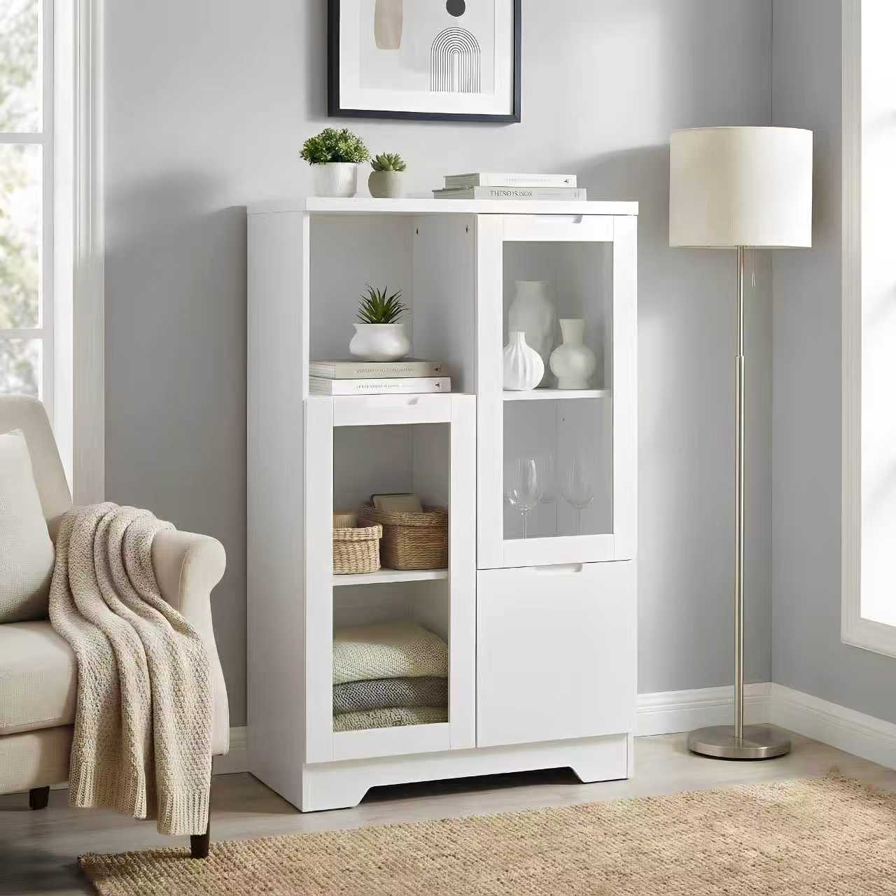MDF Painted Cabinet With Glass Doors And Drawer, Open Storage Space, White ,Bedroom, Living Room