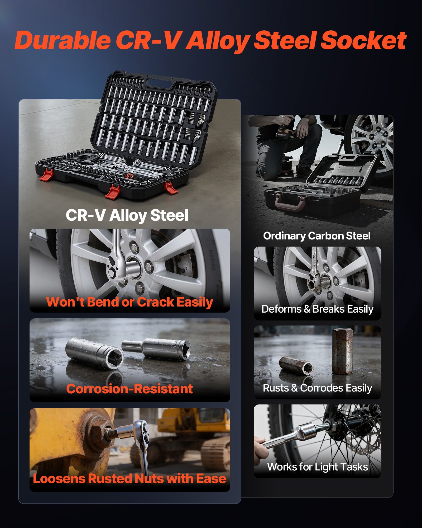 Mechanics Tool Set, 253-Piece Mechanic Tool Kit, 1/4 In, 3/8 In, And 1/2 In Drive, SAE And Metric Socket Set, Wrenches, Screwdriver Bits, Accessories, And Storage Case, For Automotive Repair