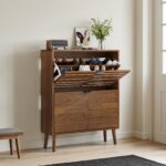 Medieval Modern Independent Shoe Cabinet, 31.5-inch Walnut Shoe Storage Cabinet,, Fence Shoe Cabinet With 2 Flip Drawers, Suitable For Corridors And Entrances