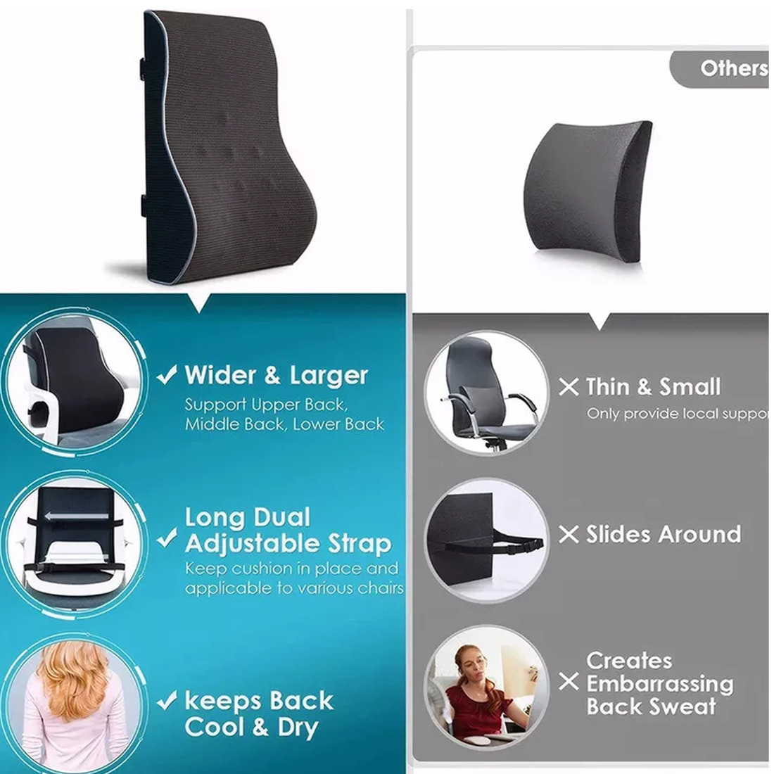 Memory Foam Seat Back Pain Support Booster Cushion Chair Car Pillow Lumbar Lower