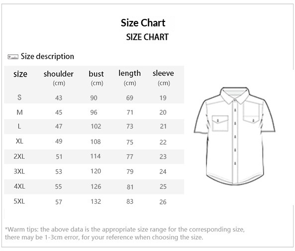 • S, M, L, XL, 2XL, 3XL, 4XL, 5XL, 6XL