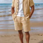 Men’s Casual Linen Loose-Fit Button-Up Shirt With Lapel Collar