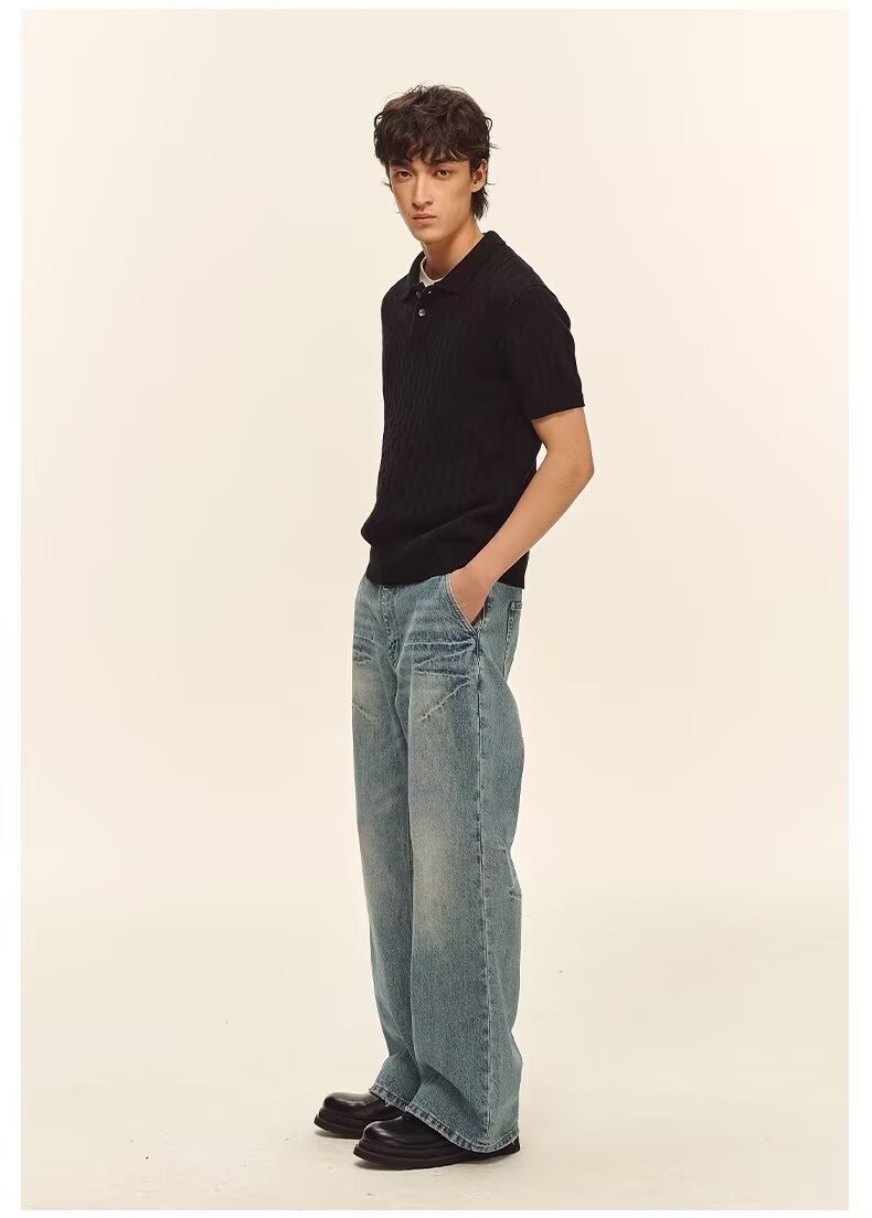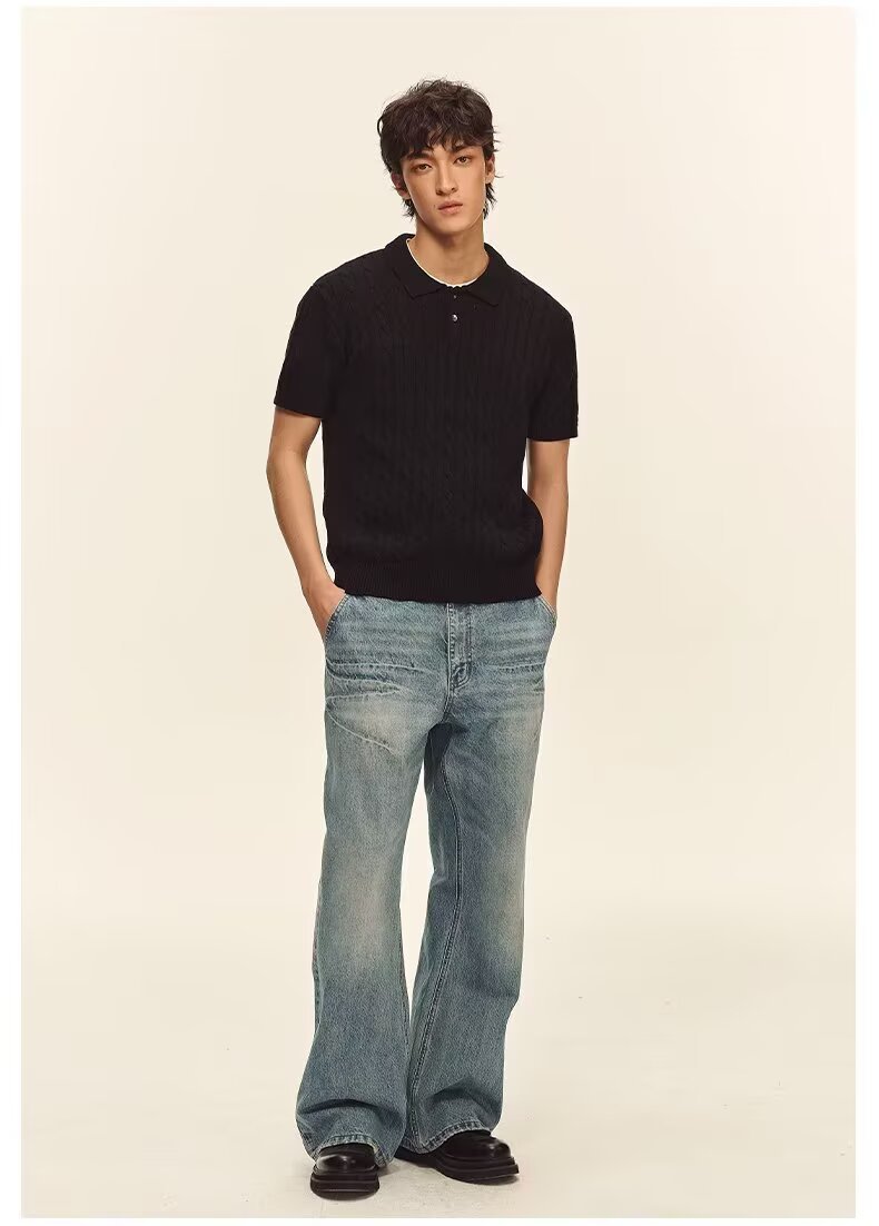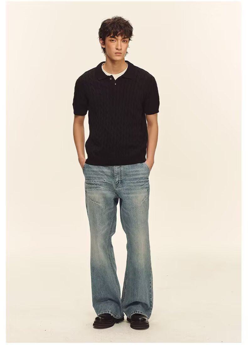 Men’s Casual Loose All-Match Summer Linen-Textured Knitted Polo Shirt