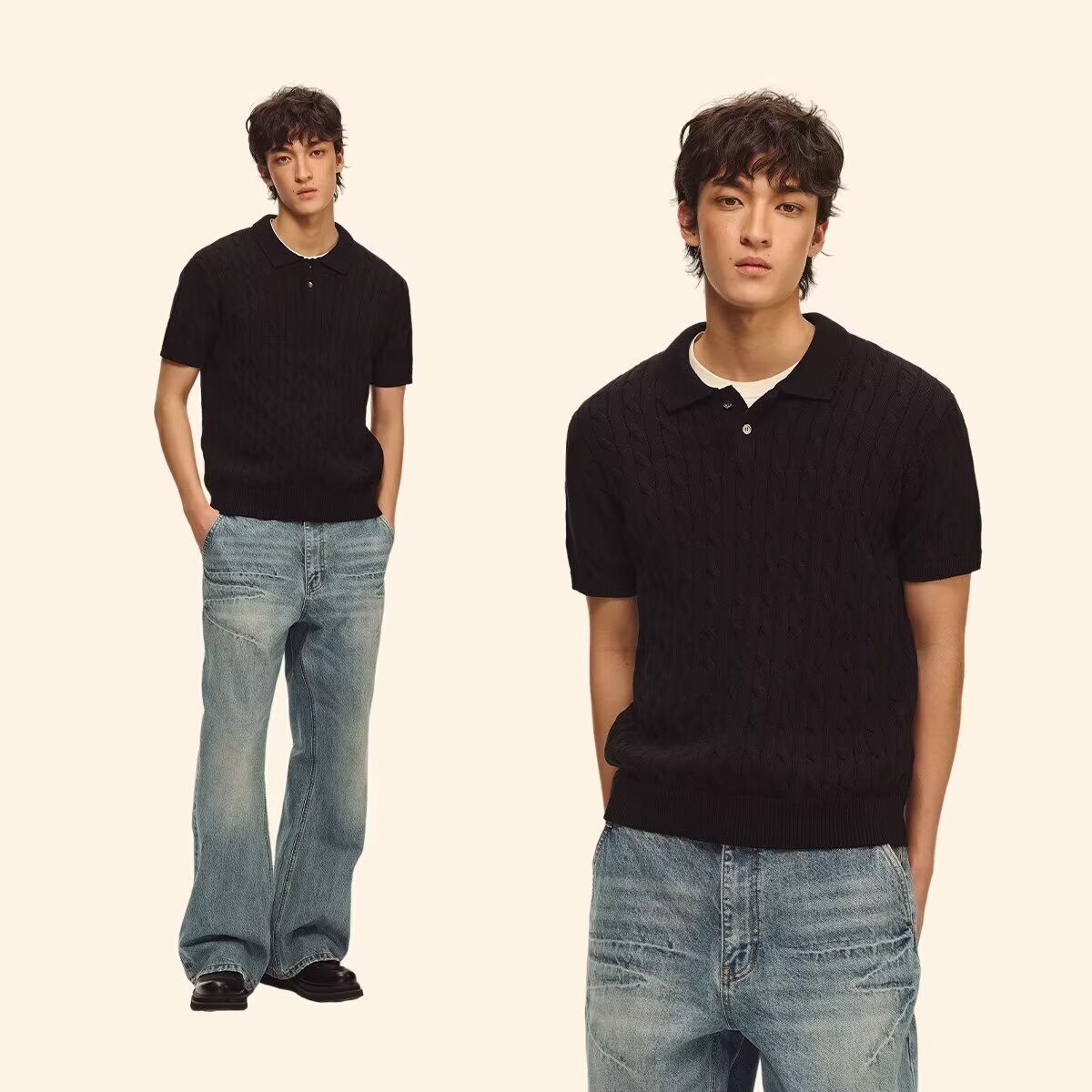 Be the first to review “Men’s Casual Loose All-Match Summer Linen-Textured Knitted Polo Shirt”