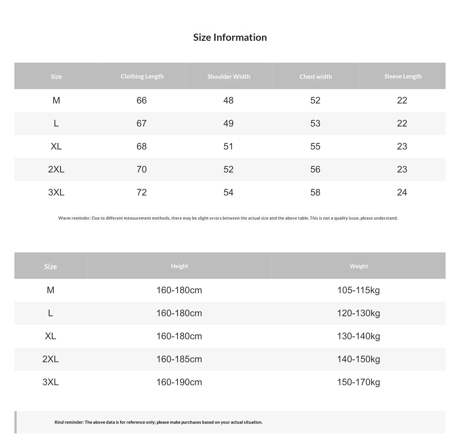 • M, L, XL, 2XL, 3XL