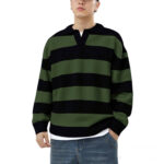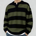 Men’s Casual Spring Autumn Everyday V-Neck Pullover Contrast-Color Striped Long-Sleeve Knit Sweater is designed for style, comfort, and everyday use.
