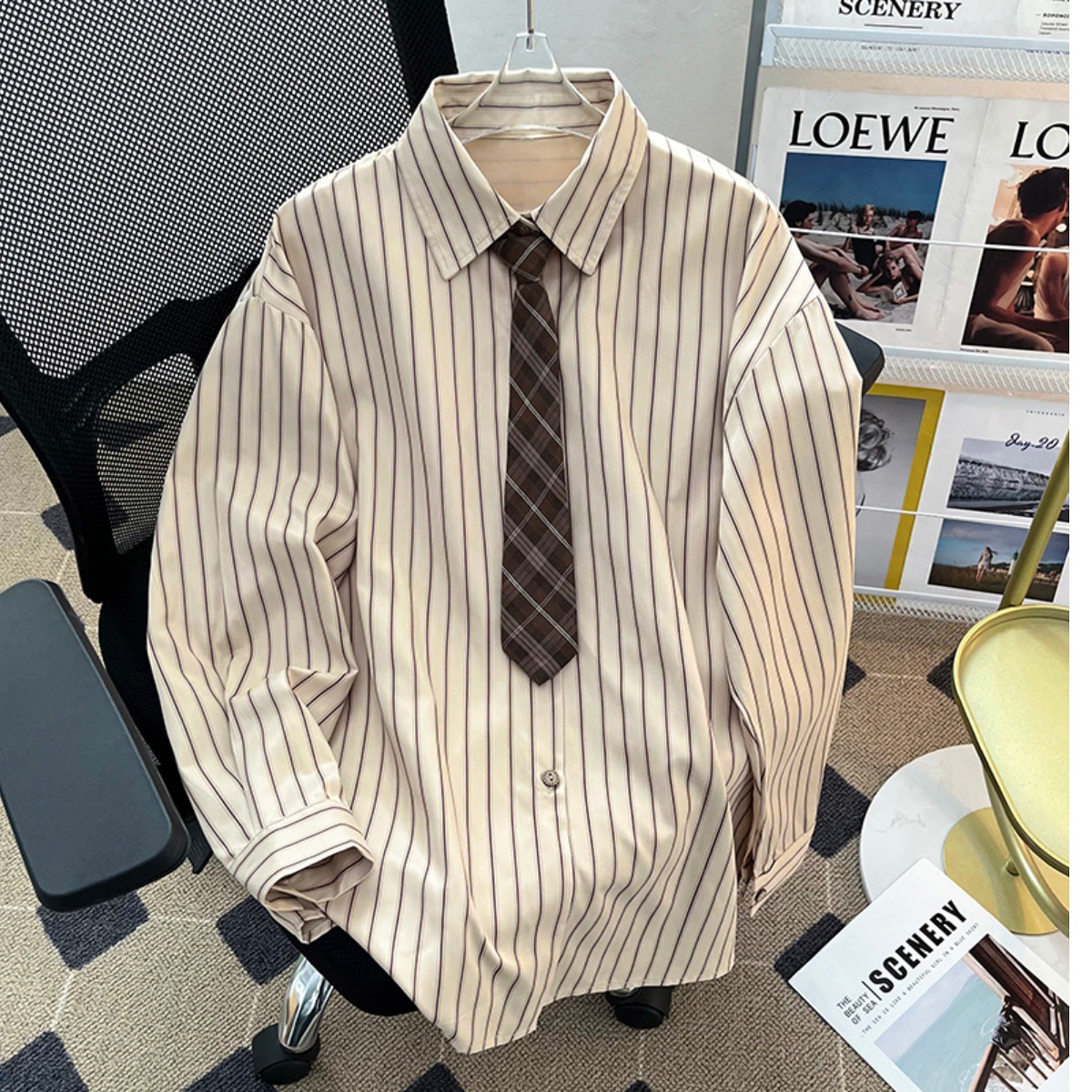 Be the first to review “Men’s Fashionable Loose-Fit Lapel-Style Striped Shirt”