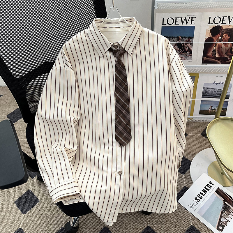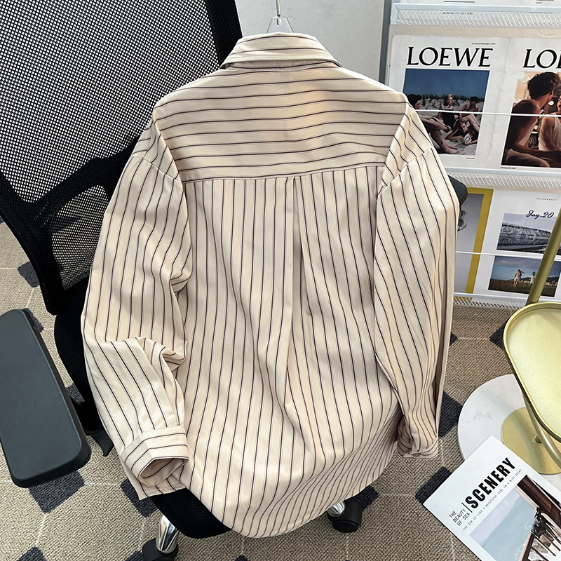 Men’s Fashionable Loose-Fit Lapel-Style Striped Shirt