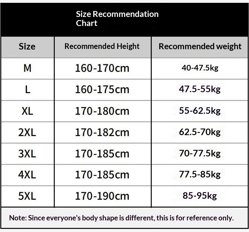 M, L, XL, 2XL, 3XL, 4XL, 5XL
