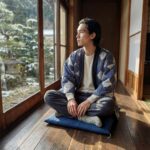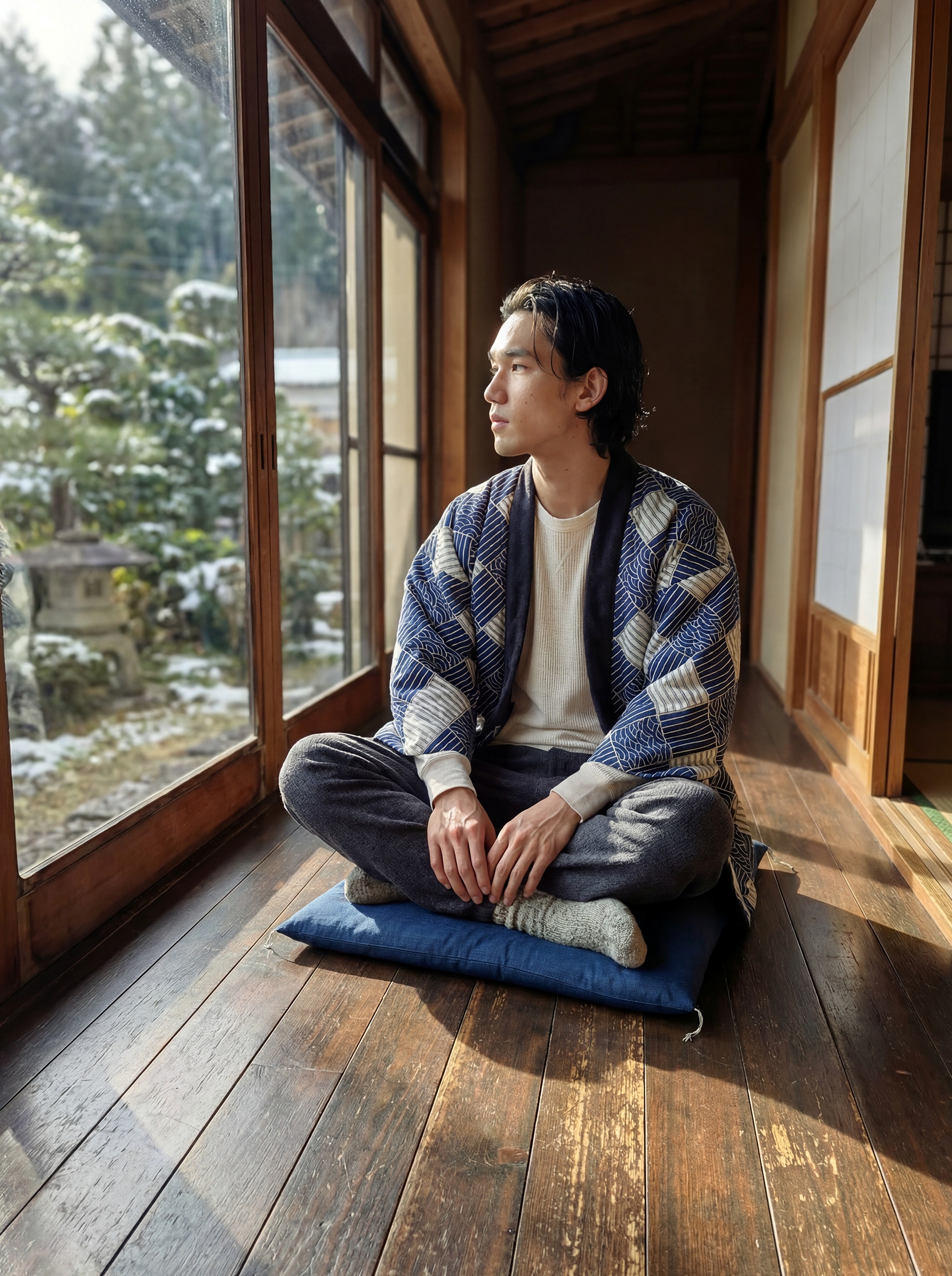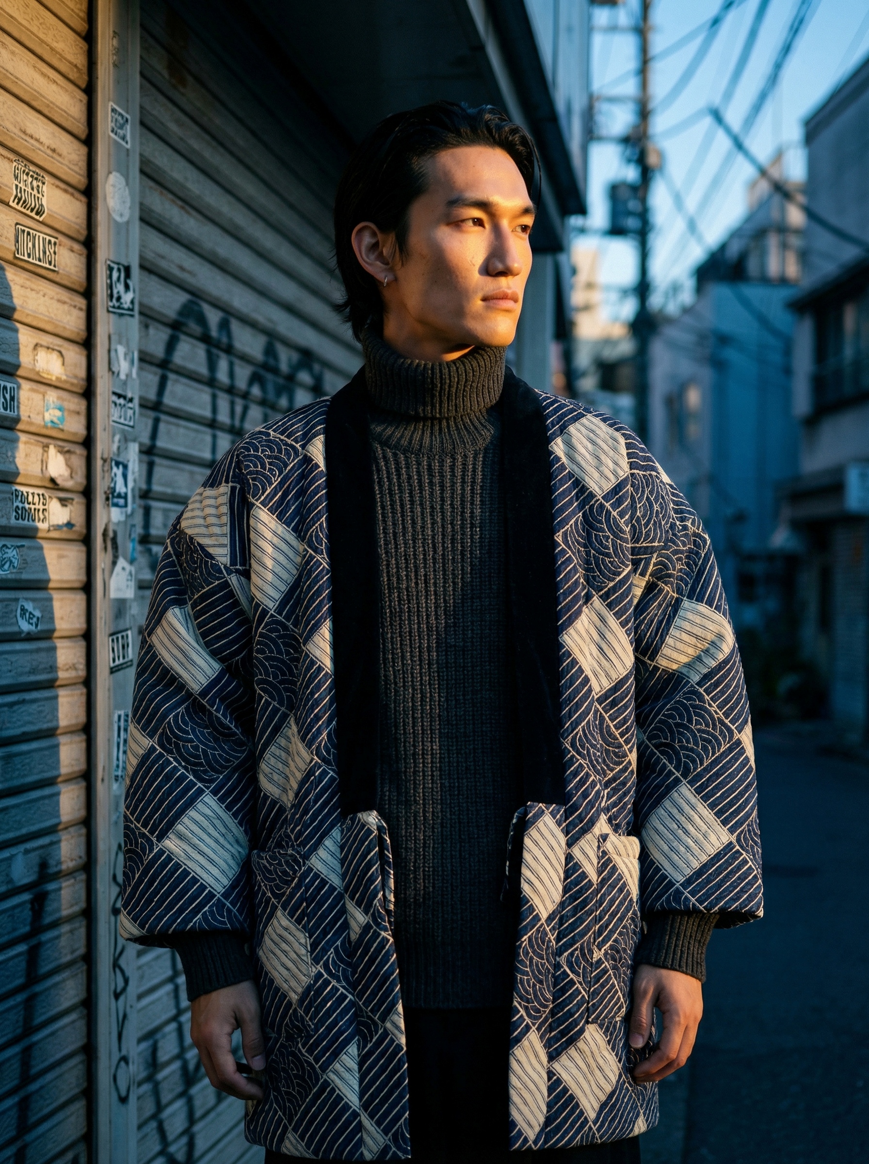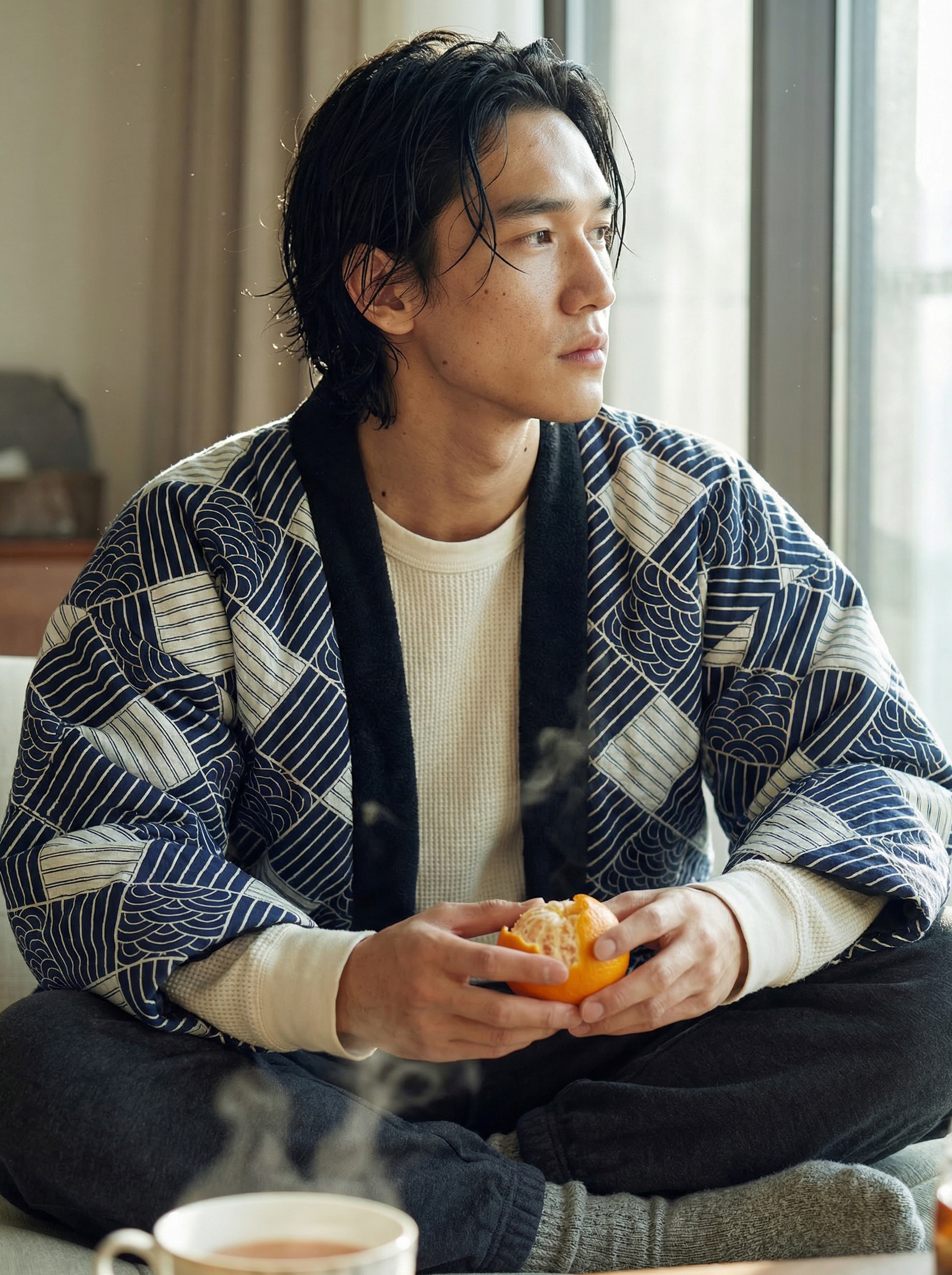 Men’s Haori Style Autumn Winter Quilted Jacket Japanese Kimono Coat, Striped Loungewear, Indoor Wear. Lightweight Thermal Japanese Style Cotton Coat