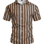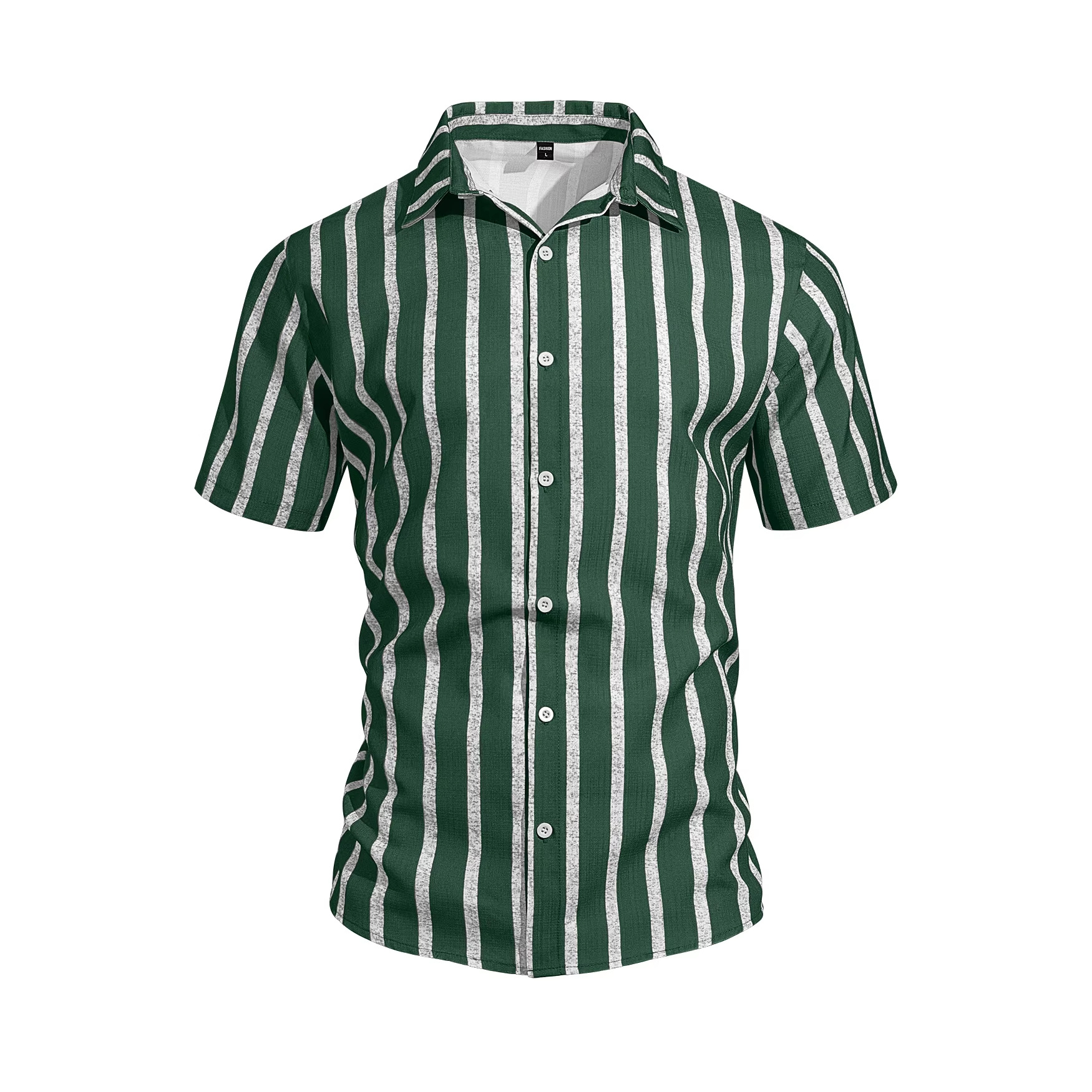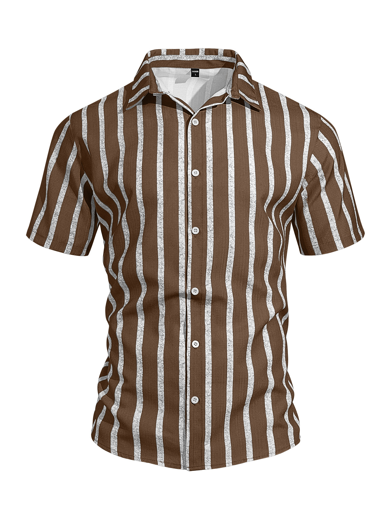 Men’s Plus-Size Light Mature Lapel Striped Short-Sleeve Shirt