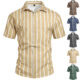 Men's Plus-Size Light Mature Lapel Striped Short-Sleeve Shirt