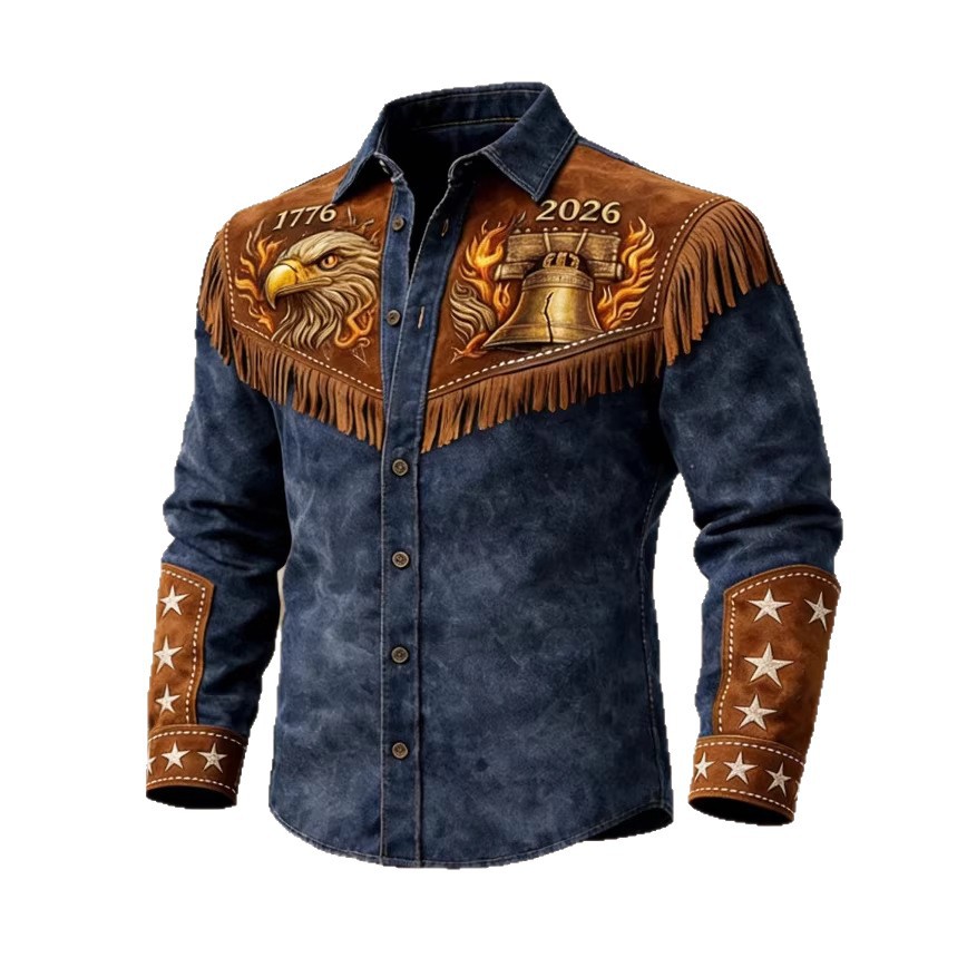 Mens Retro Distressed Western US 250th Anniversary Print Shirt