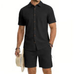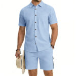 Be the first to review “Mens Short-Sleeve Button-Down Shirt Drawstring Shorts Two-Piece Set”
