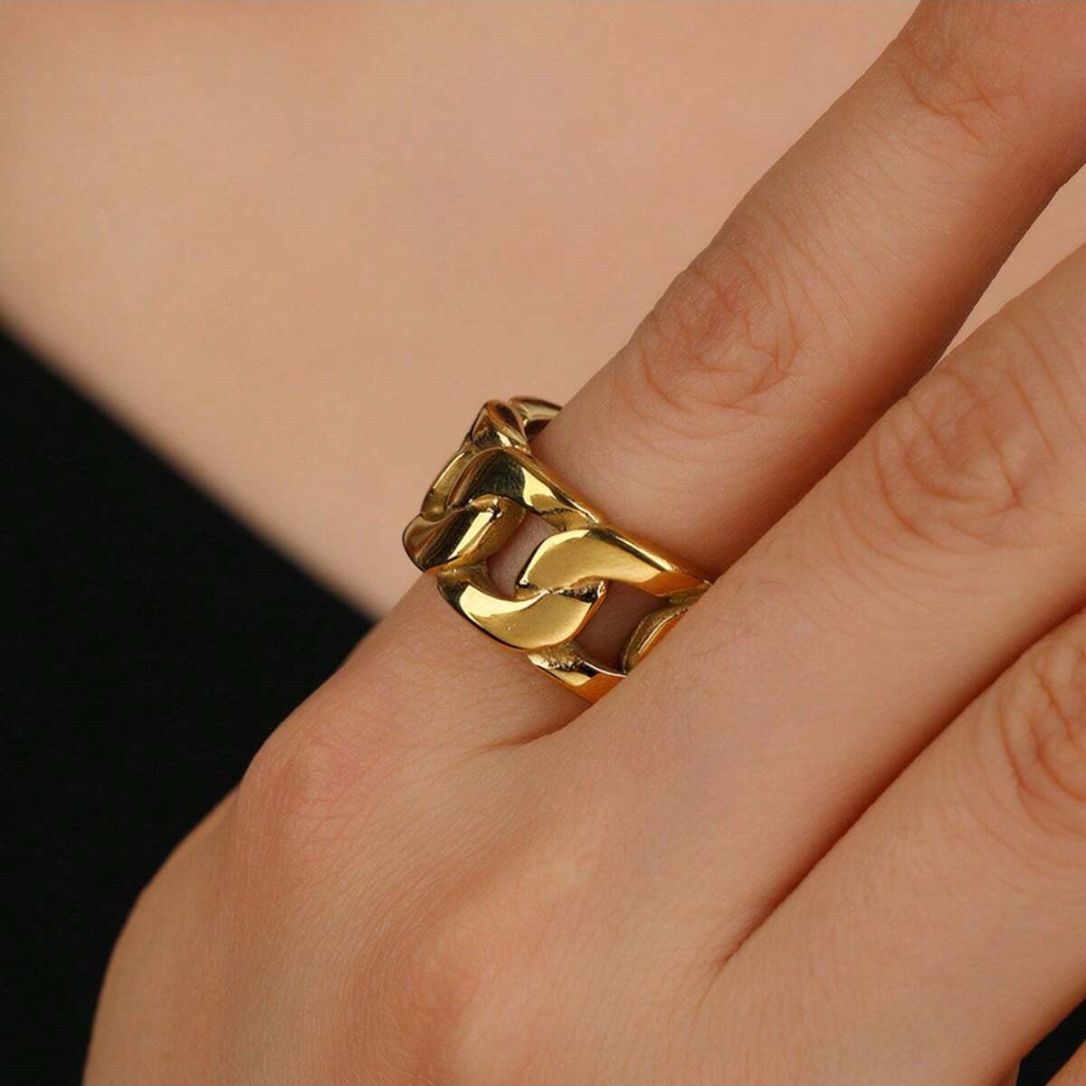 Mens Simple Glossy Gold Hip-Hop Ring In European And American Style
