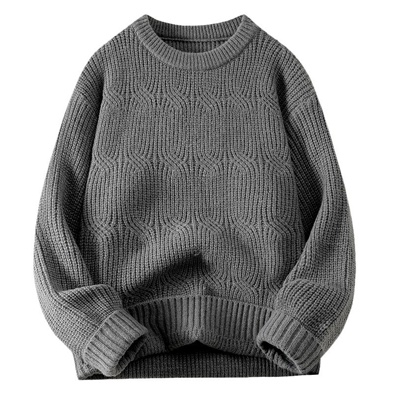 Men’s Solid-Colored Knitted Long-Sleeve Retro Crew-Neck Sweater