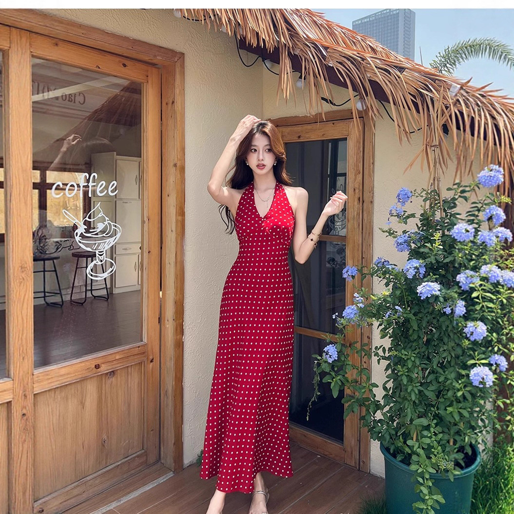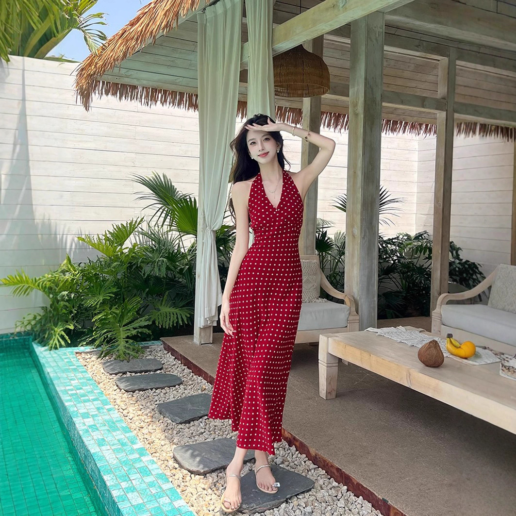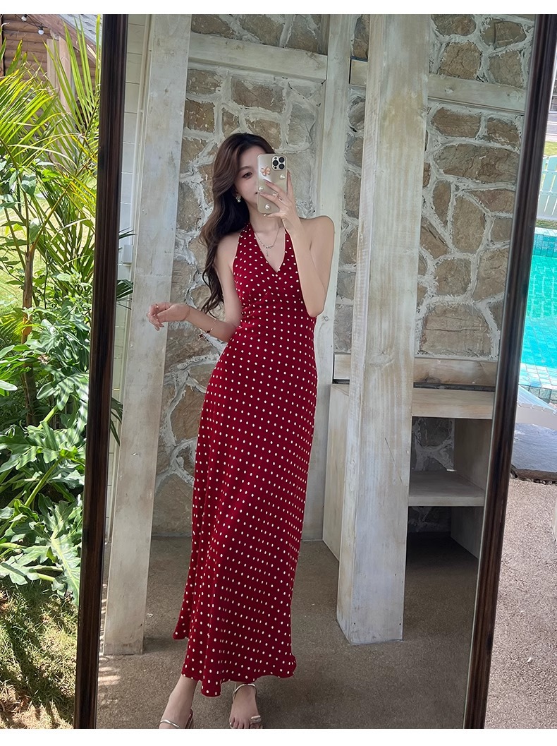 Mid-length Polka Dot Summer New Slim-fit Figure-flattering Sexy Backless Dress For Women
