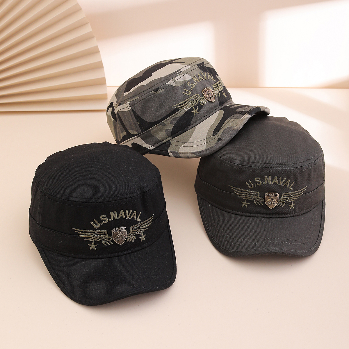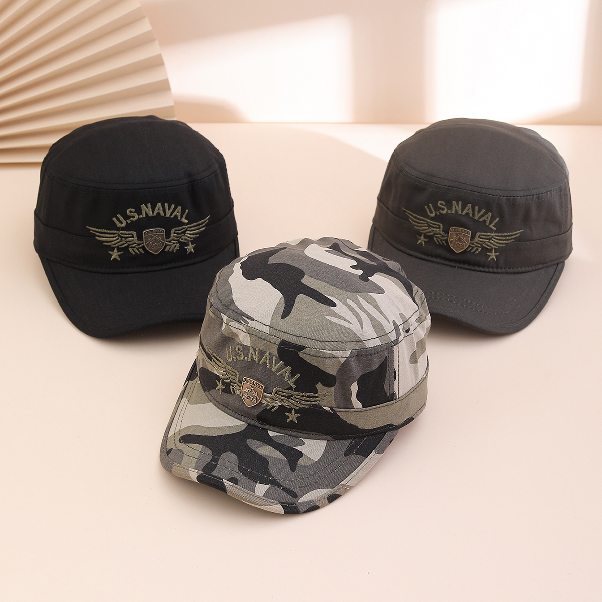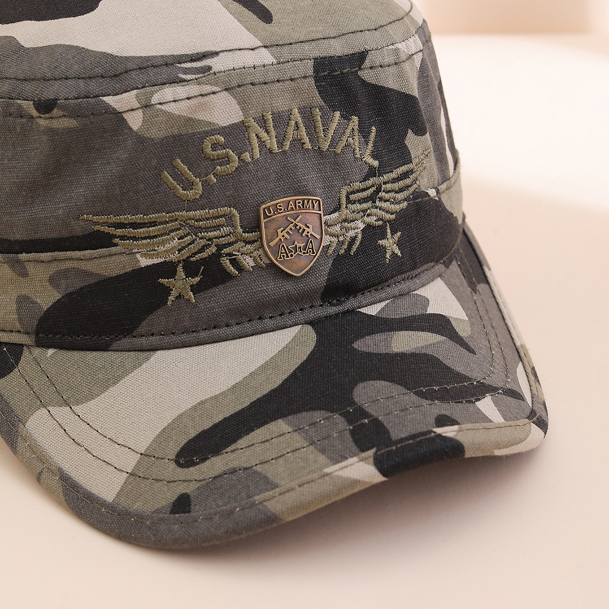 Be the first to review “Military Style Camouflage Patterned Peaked Cap With Embroidered Wings And Metal Logo For Sun Protection Casual Outdoor Baseball Cap”