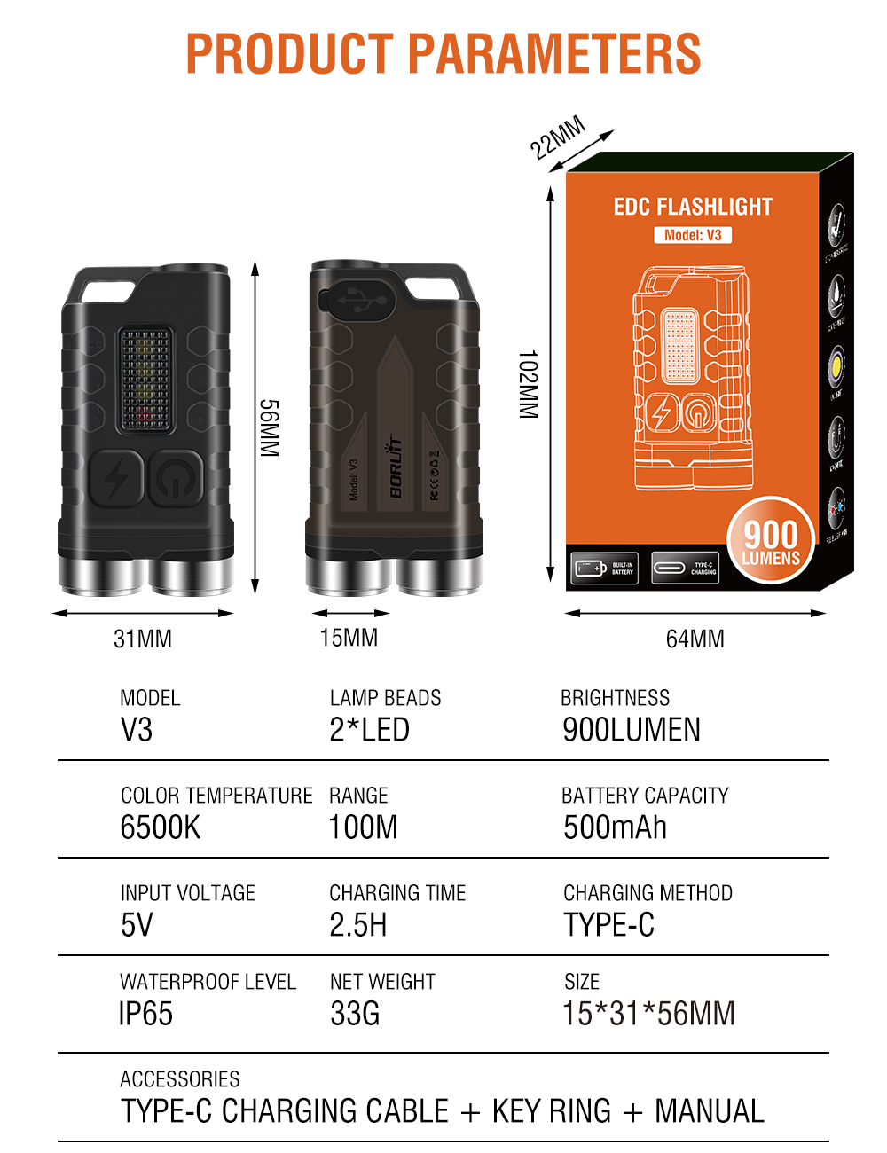 • Single Flashlight + USB Cable + Color Box + Instruction Manual