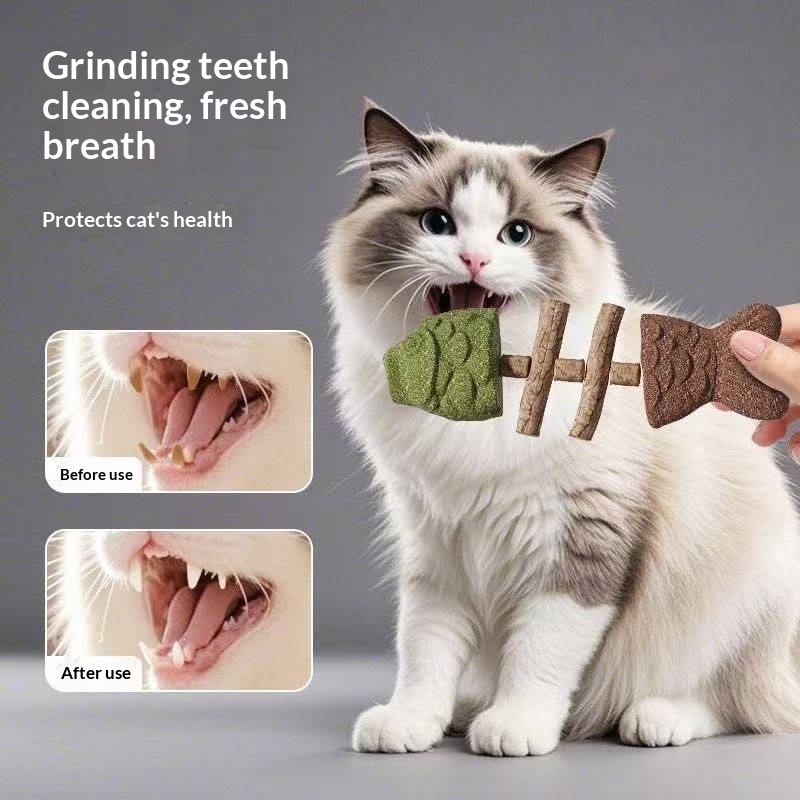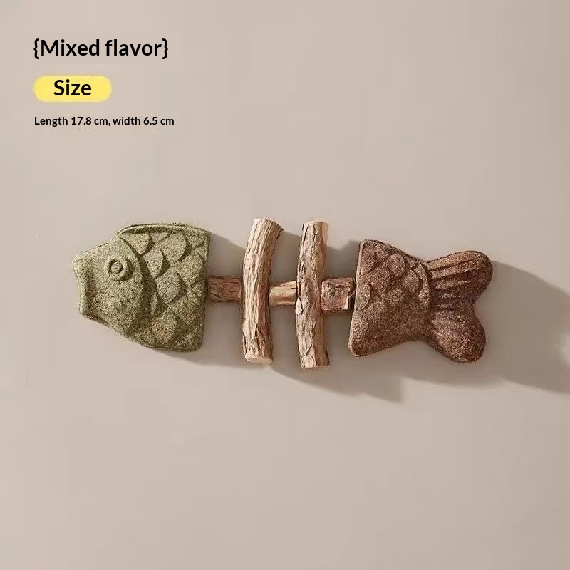 Mint-flavored Fishbone-shaped Catnip Teething Stick Realistic Fish And Insect Model With Bumpy Fruit Designdurable Chew Toy For Pets