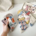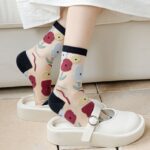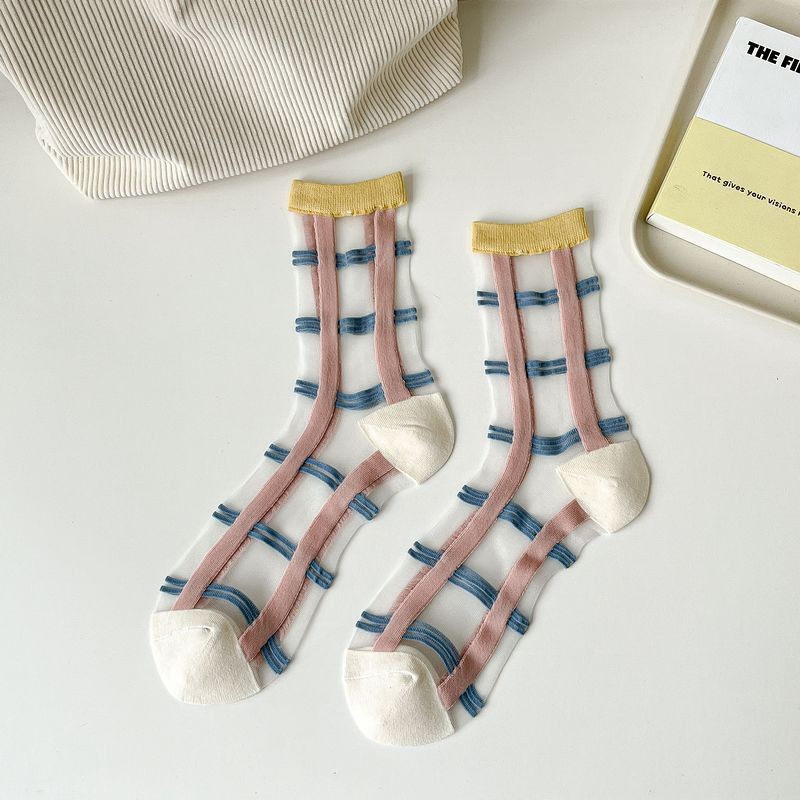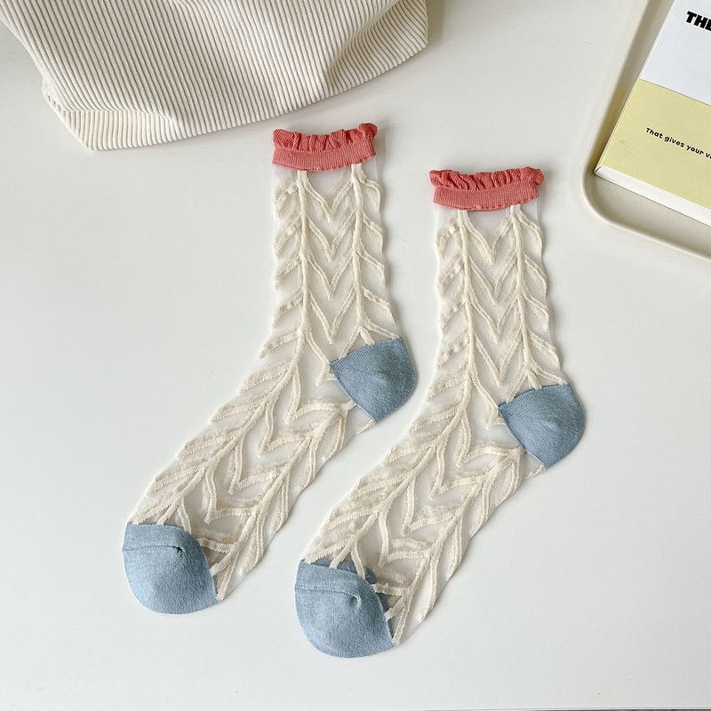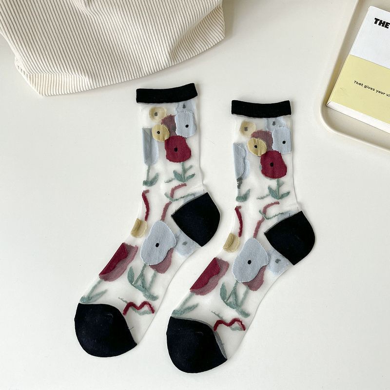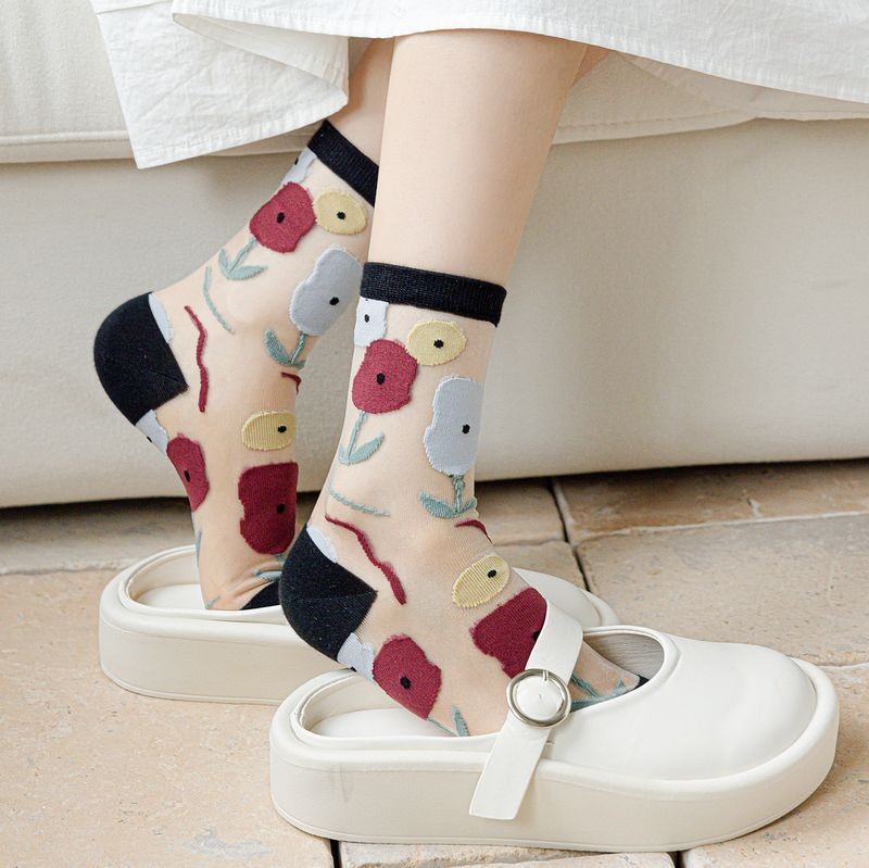 Mixed Color Summer Midsole Socks, Flower Transparent Crystal Glass Fiber Women’s Socks