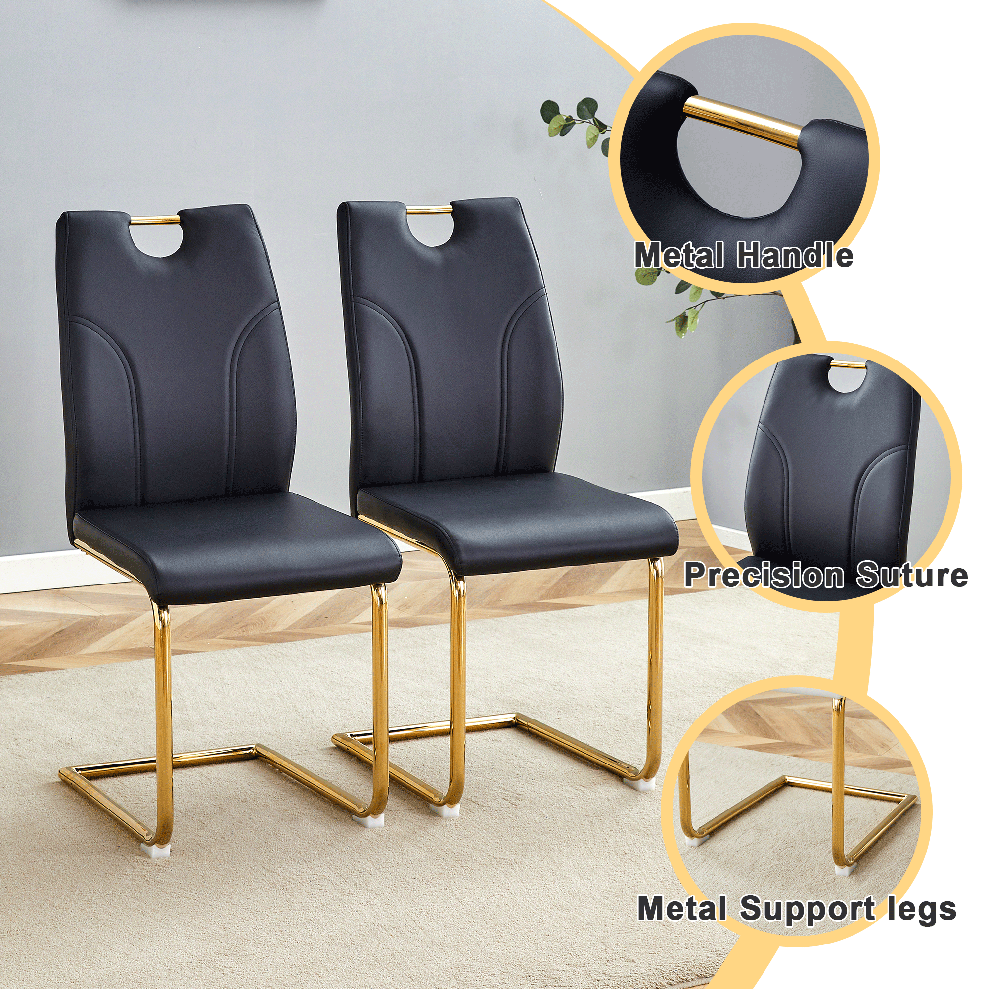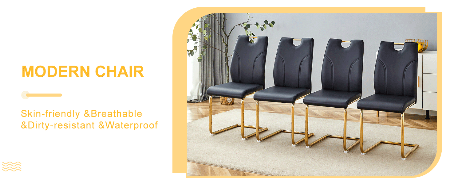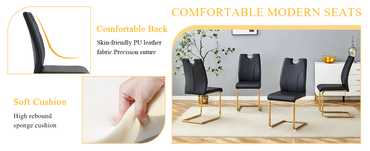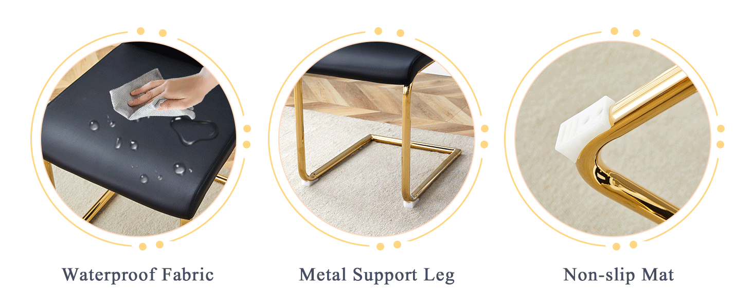 Modern Dining Table With PU Cushion Seat Dining Chair Living Room Chair Upholstered Chair With Gold-plated Leg Leg Design, Kitchen, Living Room, Bedroom, Dining Room Side Chair Set Of 6 is designed for style, comfort, and everyday use.