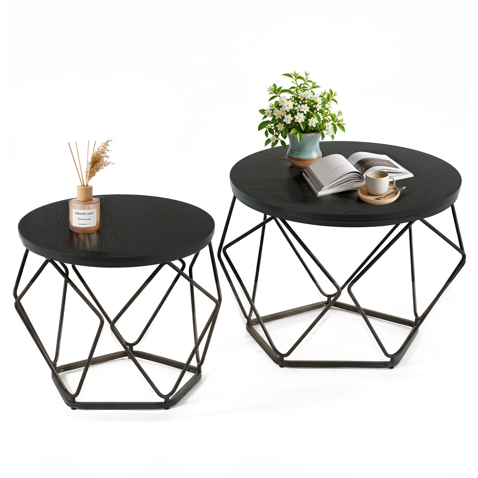Modern Geometric Style Coffee Table Set 2-piece Round Stackable Side Table With Hidden Storage Space is designed for style, comfort, and everyday use.