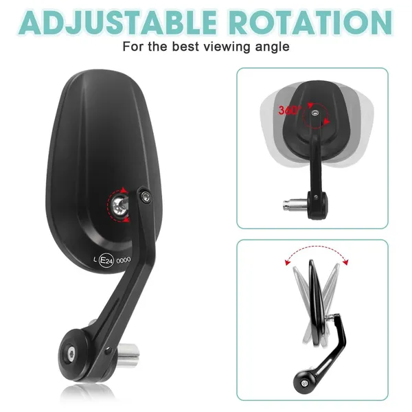 Motorcycle Handlebar End Mirror, Mirror, Rearview Mirror, CNC E-checked, 7/8″, Black