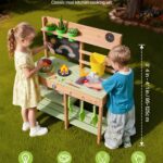 Mud Kitchen, Outdoor Mud Kitchen For Kids, Wood Outdoor Play Kitchens With Stoves, Tank, Sink, Planting Shovels, Spatulas, Box, Cookware Pots And Accessories, Wooden Play Kitchens For Home, Lawn