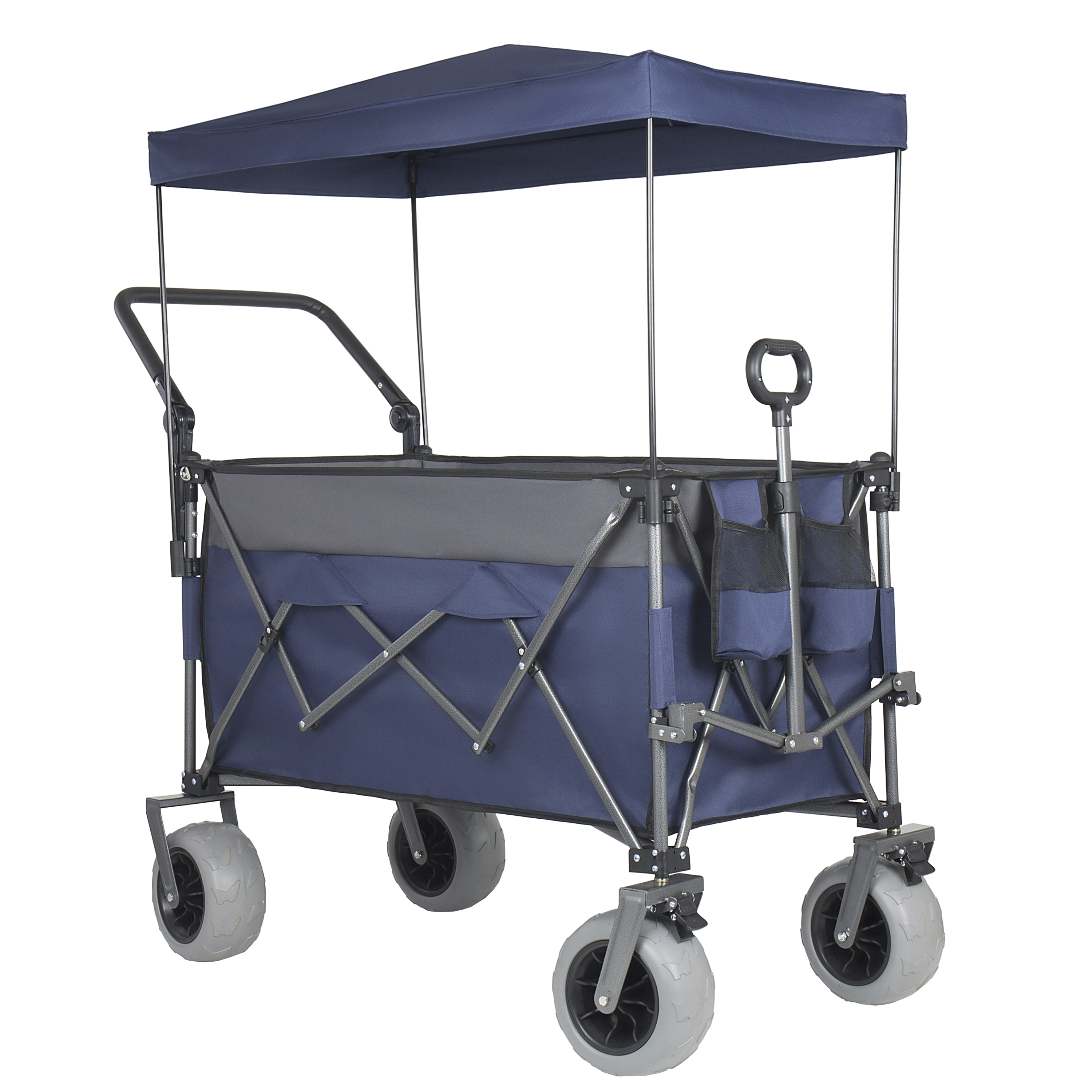 Multi- Functional Push- Pull Folding Wagon Cart With Rotating Handle & Canopy 9 X4 Beach Tires For Camping & Beach Load Capacity 480lbs 300L Large Capacity For Transport Groceries Outdoor Use