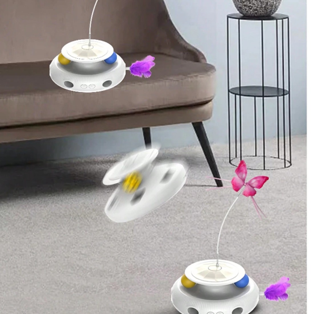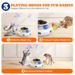 • -Multi-functional Design: This electric cat toy combines three functions in one, featuring a spinning platform with random movements to attract your cat’s attention. It includes interactive elements like rotating balls and fluttering butterfly attachments to keep your cat entertained for hours.