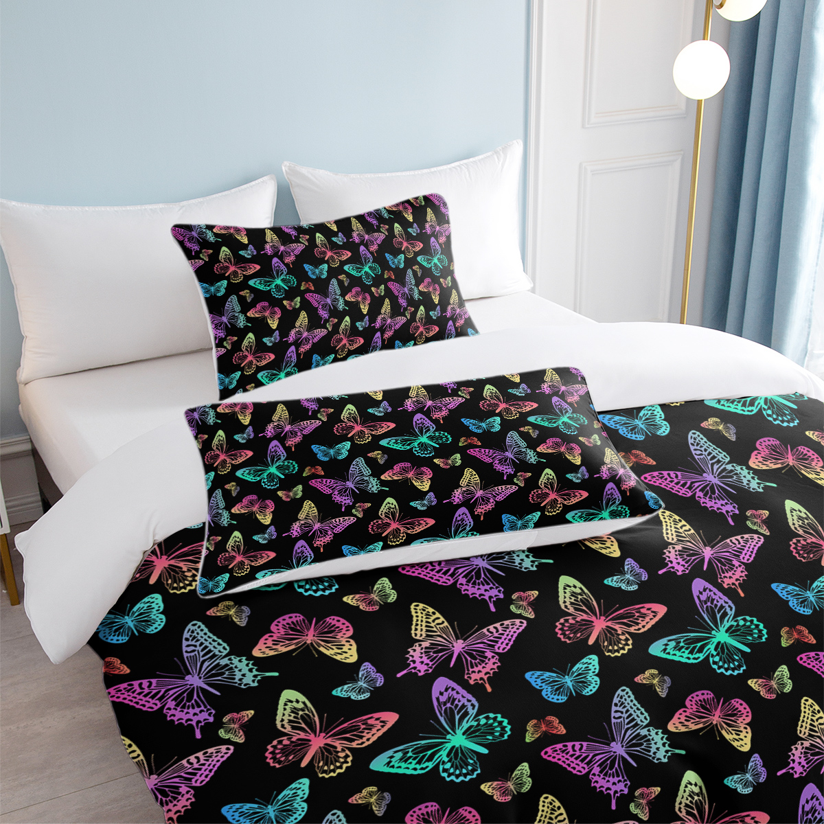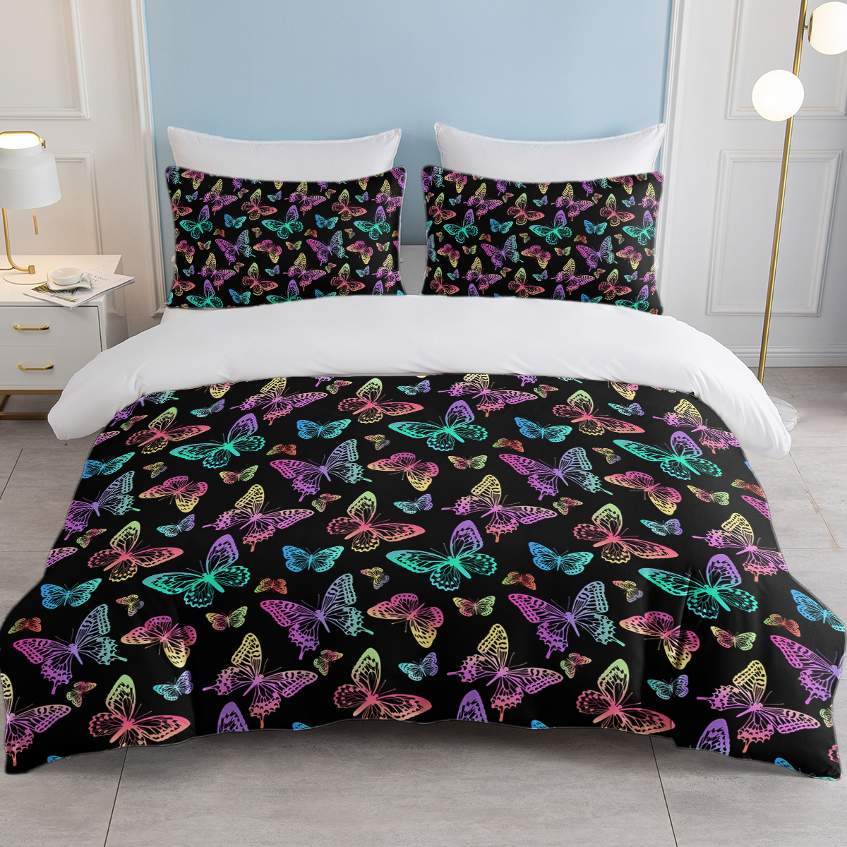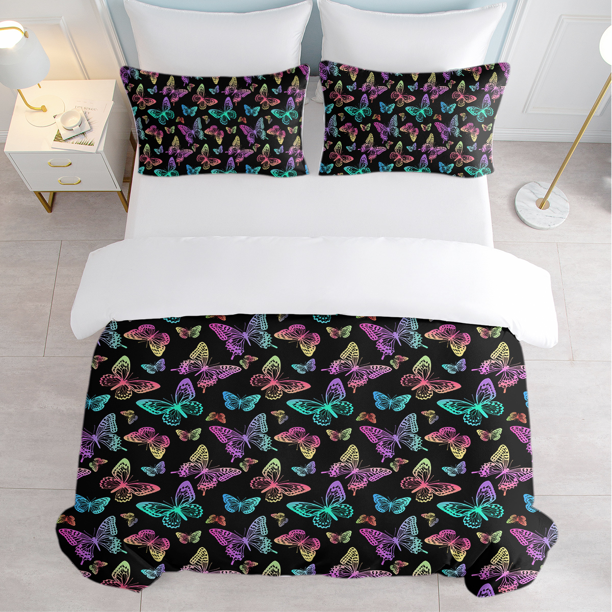 Neon Butterfly Printed Duvet Cover Set – Colorful Microfiber Bedding, Perfect For Bedroom Decor
