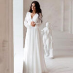 New Arrival Petite Train Deep V-Neck A-Line Wedding Dress