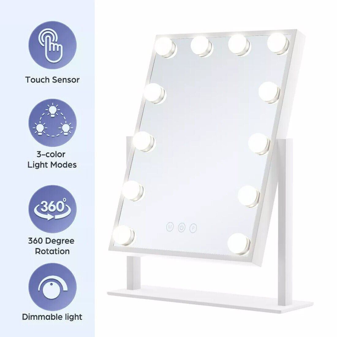 Hollywood Mirror Vanity Make Up Mirror with 12 Lights LED Dressing Table MirrorDescription: • – 100% Brand New and Quality • – Light Modes: Our makeup mirror has 3 light modes: white light/yellow light/natural light