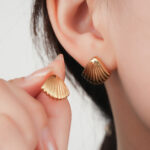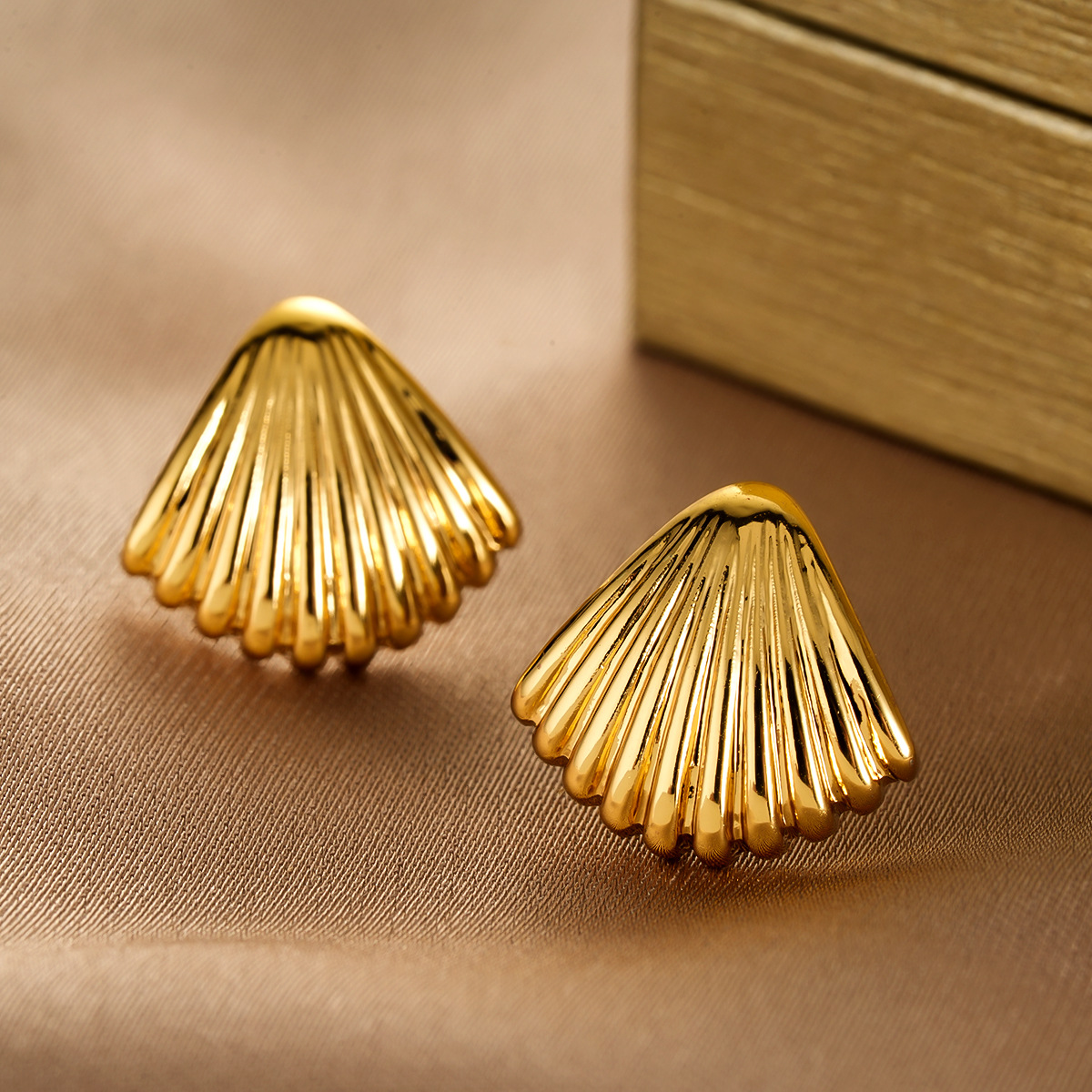 New Retro Niche Design Shell Earrings, Light Luxury Personality Simple Studs, All-Match Geometric Jewelry For Women