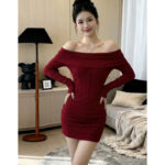 Be the first to review “Off-shoulder Long-sleeve Womens Spring Slim-fit Dress”