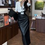 Office Lady Professional Black Leather Skirt Two-Piece Set