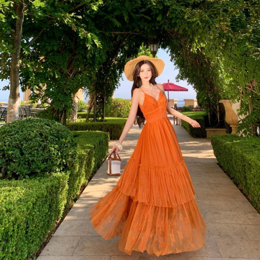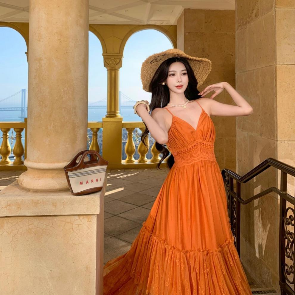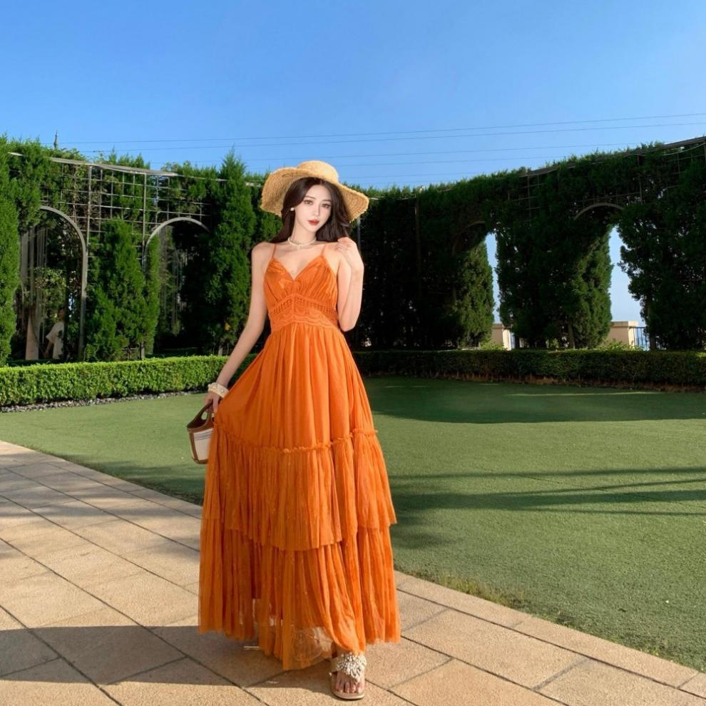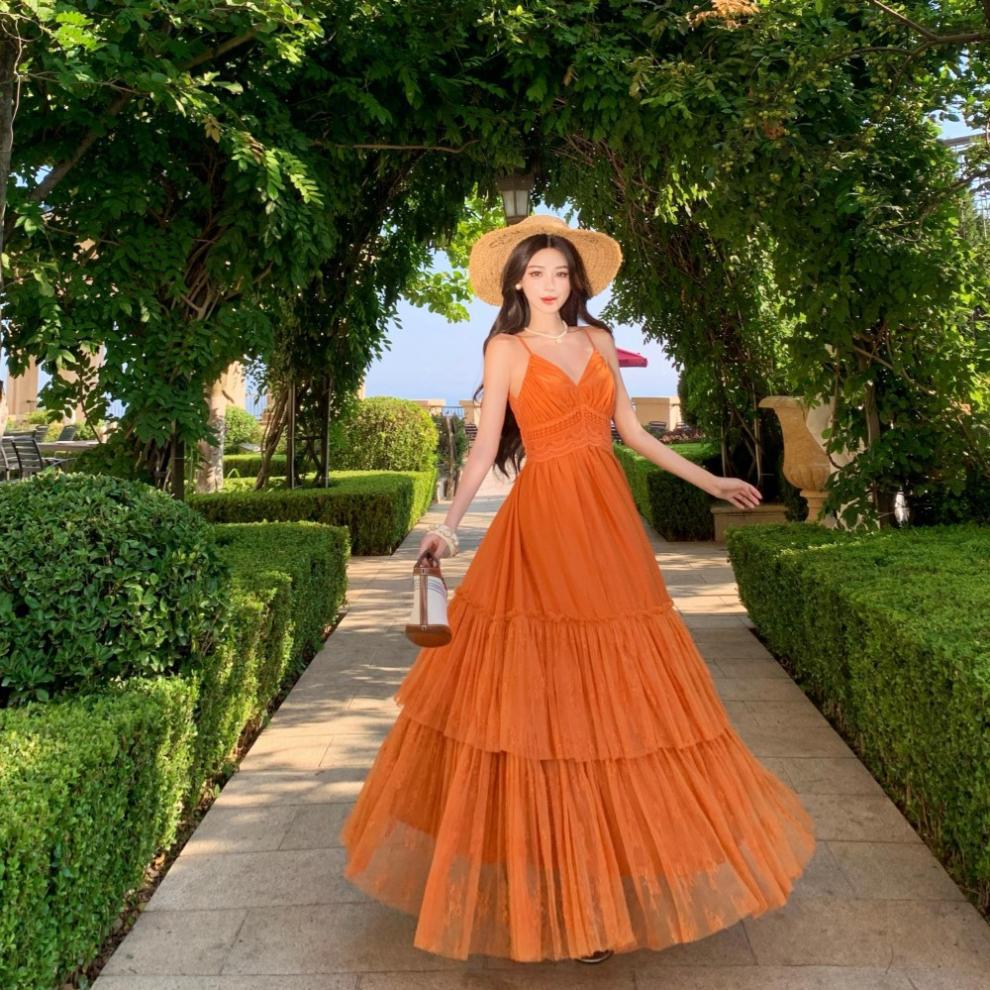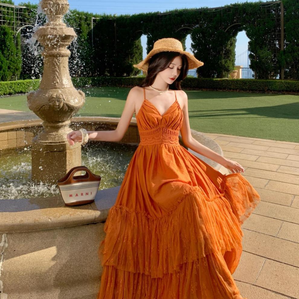Orange Lace Panel Sexy Backless Dress is designed for style, comfort, and everyday use.