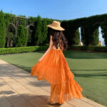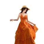 Be the first to review “Orange Lace Panel Sexy Backless Dress”