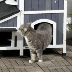 Outdoor Cat House with Weather-resistant Roof & Garden Bed, Outdoor Cat Shelter Enclosure with Multiple Entrances, Modern Cat Furniture Hideout, Cat Gifts, Gray