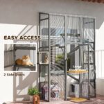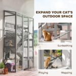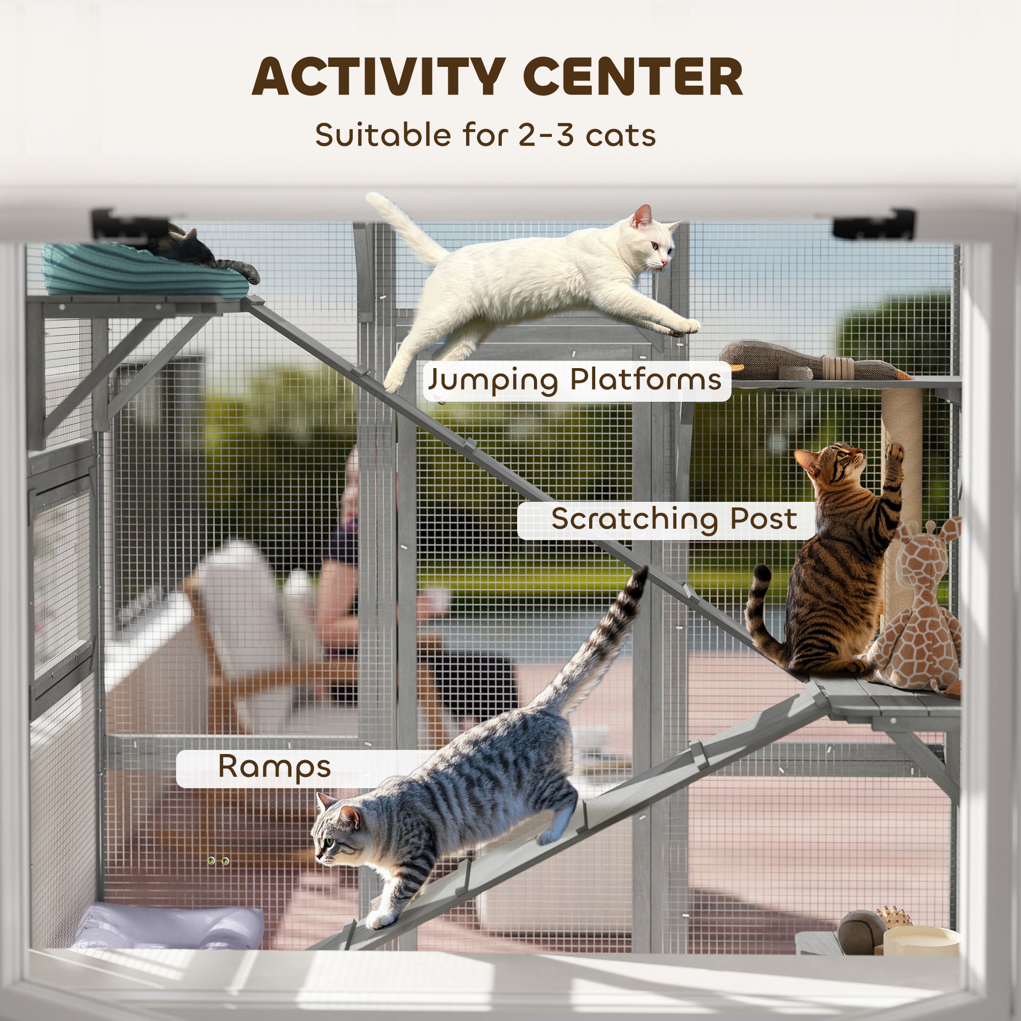 Outdoor Catio Cat Enclosure, Large Wooden Cat House with 6 Jumping Platforms, Scratching Post, 2 Ramps, for 2-3 Kittens