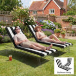 Outdoor Chaise Lounge Cushions Set of 2 with 6 Ties, High-Density Foam, for Patio and Poolside, Black and White