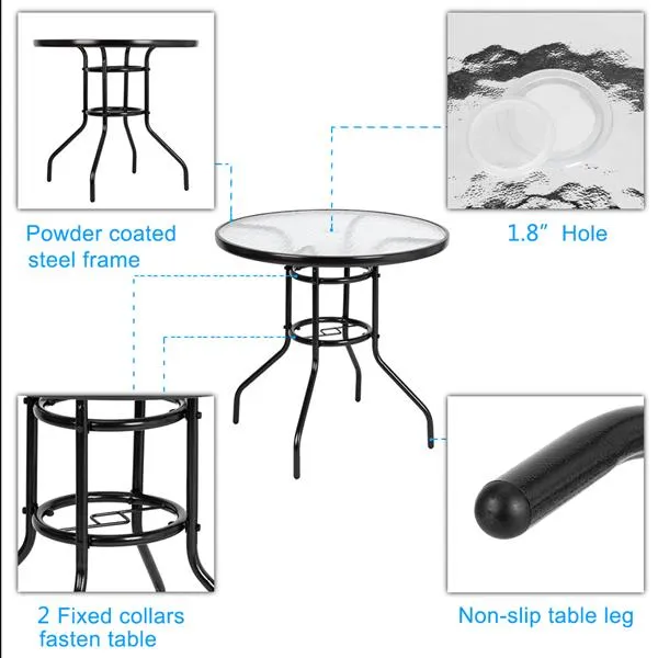 Outdoor Dining Table Round Toughened Glass Table Yard Garden Glass Table(SAME AS 93152635)