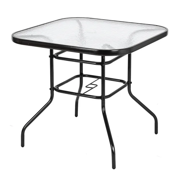 Outdoor Dining Table Square Toughened Glass Table Yard Garden Glass Table
