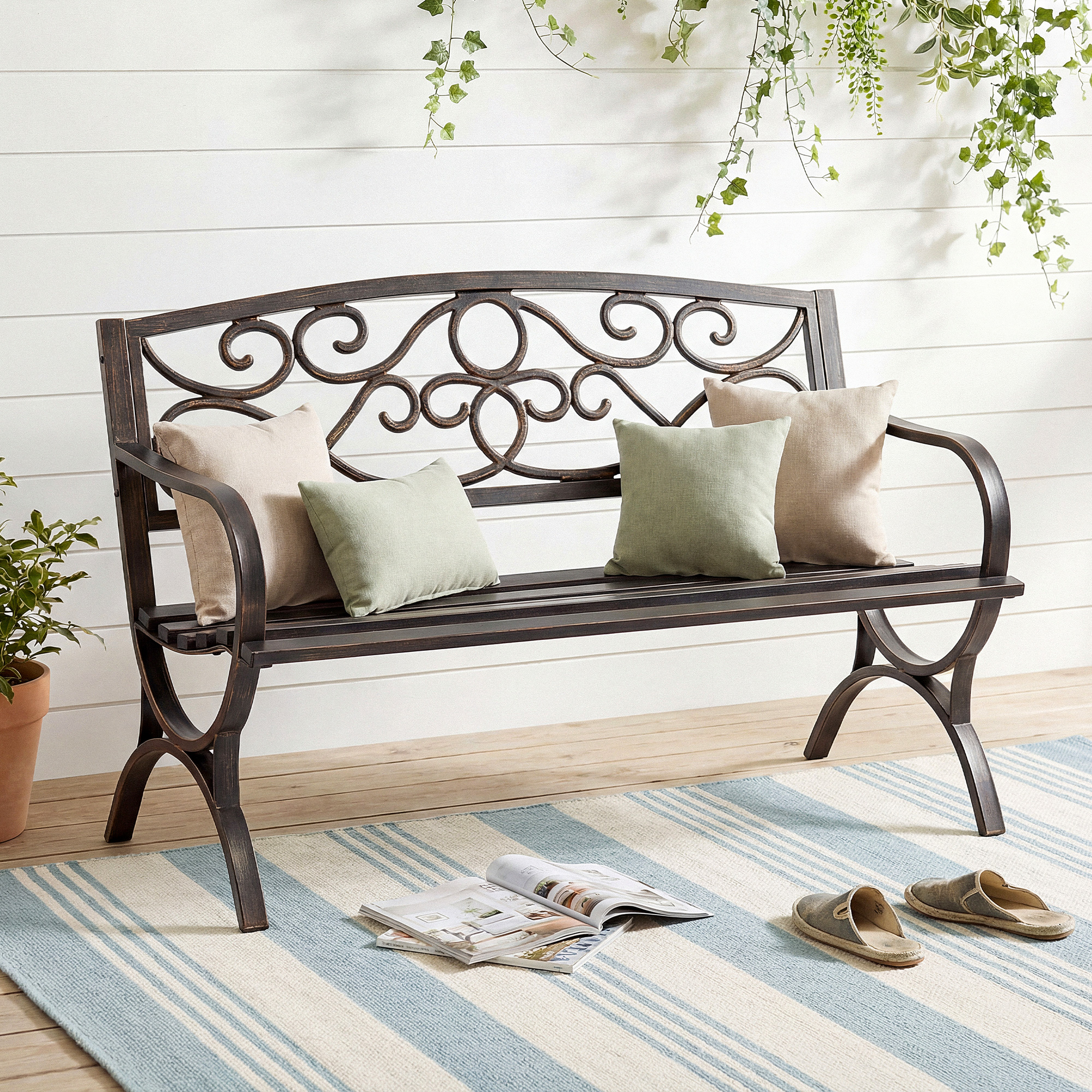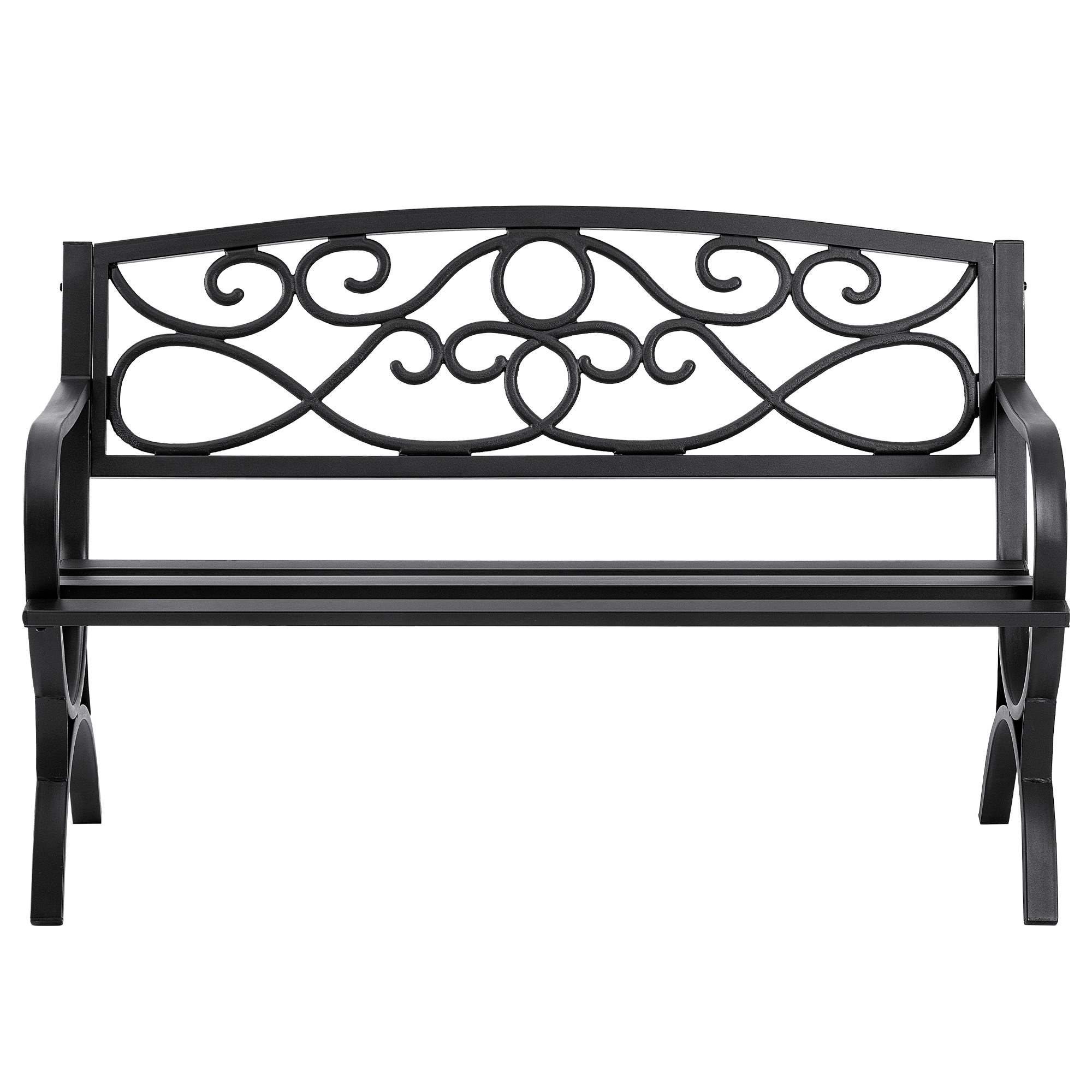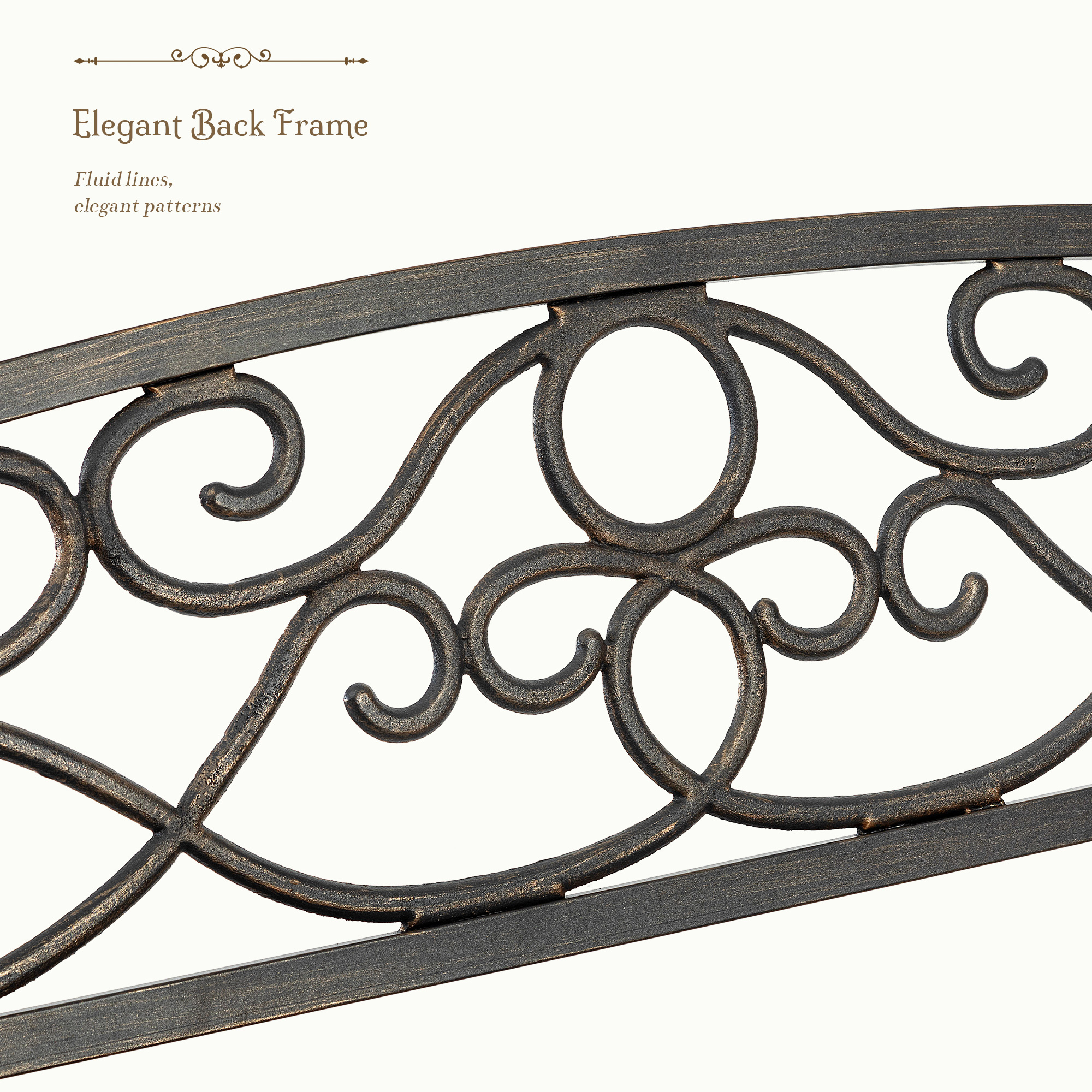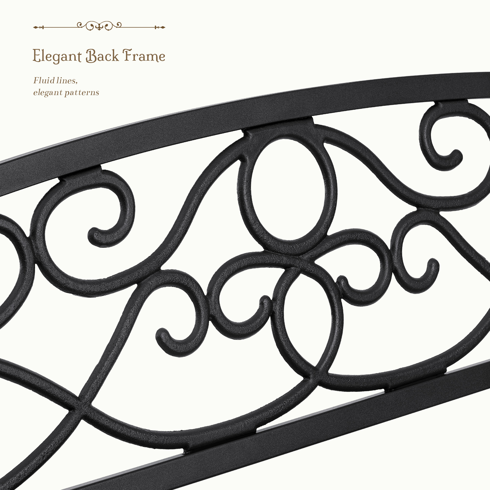 Outdoor Garden Bench, With An Iron Metal Frame And A Backrest Featuring Floral Patterns, And Arched Leg Design is designed for style, comfort, and everyday use.