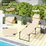 Outdoor Lounge Chair, 4 Position Adjustable Backrest, Folding, Cushioned w/ Sun Shade Roof & Pillow, Cream White