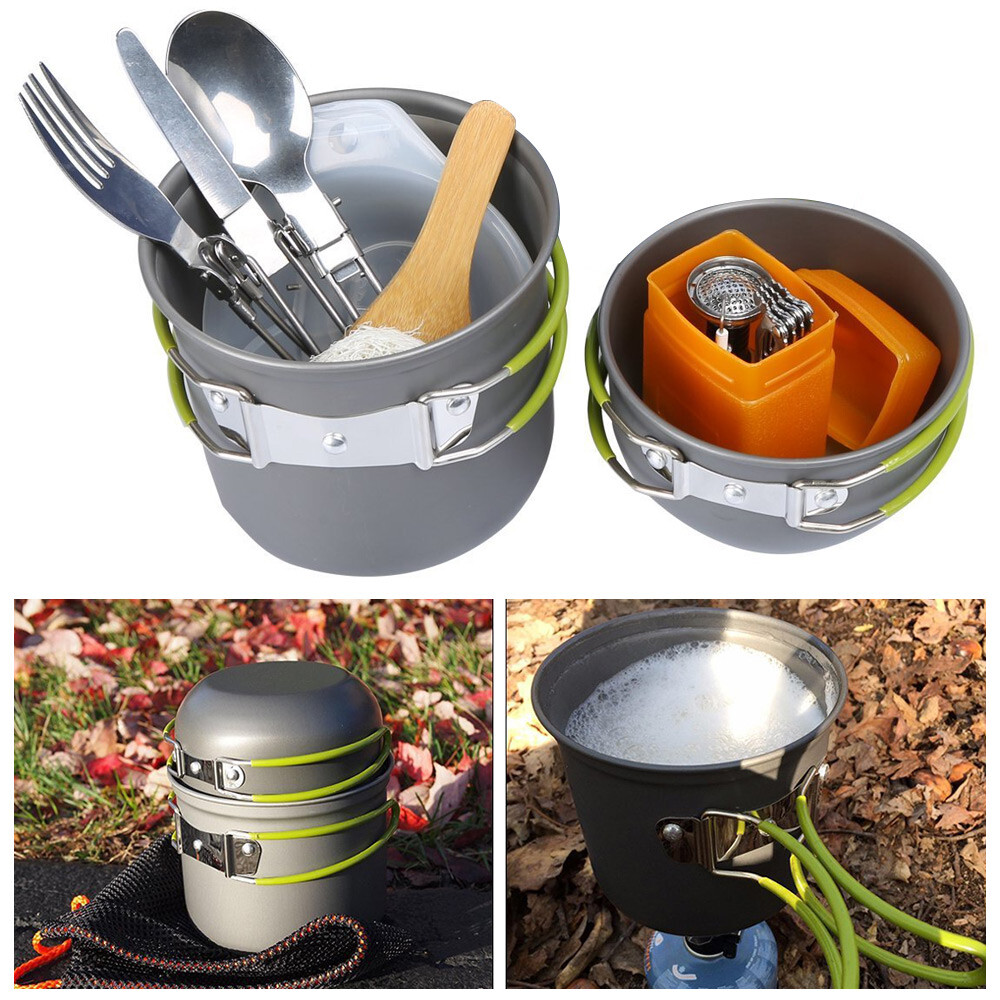 Outdoor Portable Camping Cookware Set Hiking Cooking Pot Gas Stove Tableware Kit