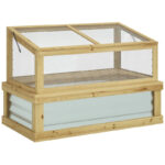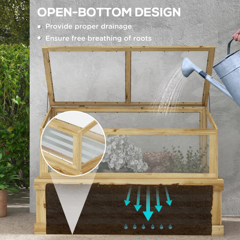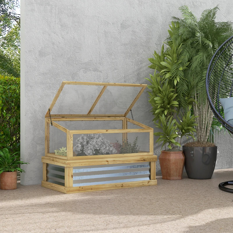 Outsunny Raised Garden Flower Bed Kit With Lean-to Greenhouse, Wooden Cold Frame Planter, Natural