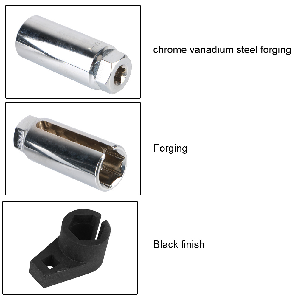 Uniersal Oxygen Sensor Socket Drive Puller And Thread Chaser Set Oxygen Sensor Removal Tool Kit 22mm Oxygen Sensor Socket 3PcsProduct Material:Vanadium SteelFeatures: – Unique Design:This socket’s slotted design allows you to remove oxygen sensors with the wiring harness still attached. The 6-point beveled nose of this 22mm socket fits oxygen sensors on a wide variety of vehicles. – High-Quality Material:Made from high-quality Chrome Molybdenum steel, the oxygen sensor socket allows users to exert maximum torque while the precision casting ensures accurate fit and function. – Why You Need It:Even if you don’t have a lot of experience working with cars, you can replace your sensor with this tool to help with your car’s emissions and air mileage. The sensors live in the harshest of environments and may require some elbow grease to remove, but this oxygen sensor socket can save your knuckles and save you time!Packaging Includes: – 1 × Oxygen Sensor Socket Removal Tool – 1 × European Standard Square Mouth – 1 × European Plum Blossom Mouth