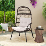 Patio Wicker Egg Chair Outdoor Rattan Lounge Basket With Seat And Back Cushions Support Up To 400 Lbs,for Backyard, Poolside, Indoor Places And So On